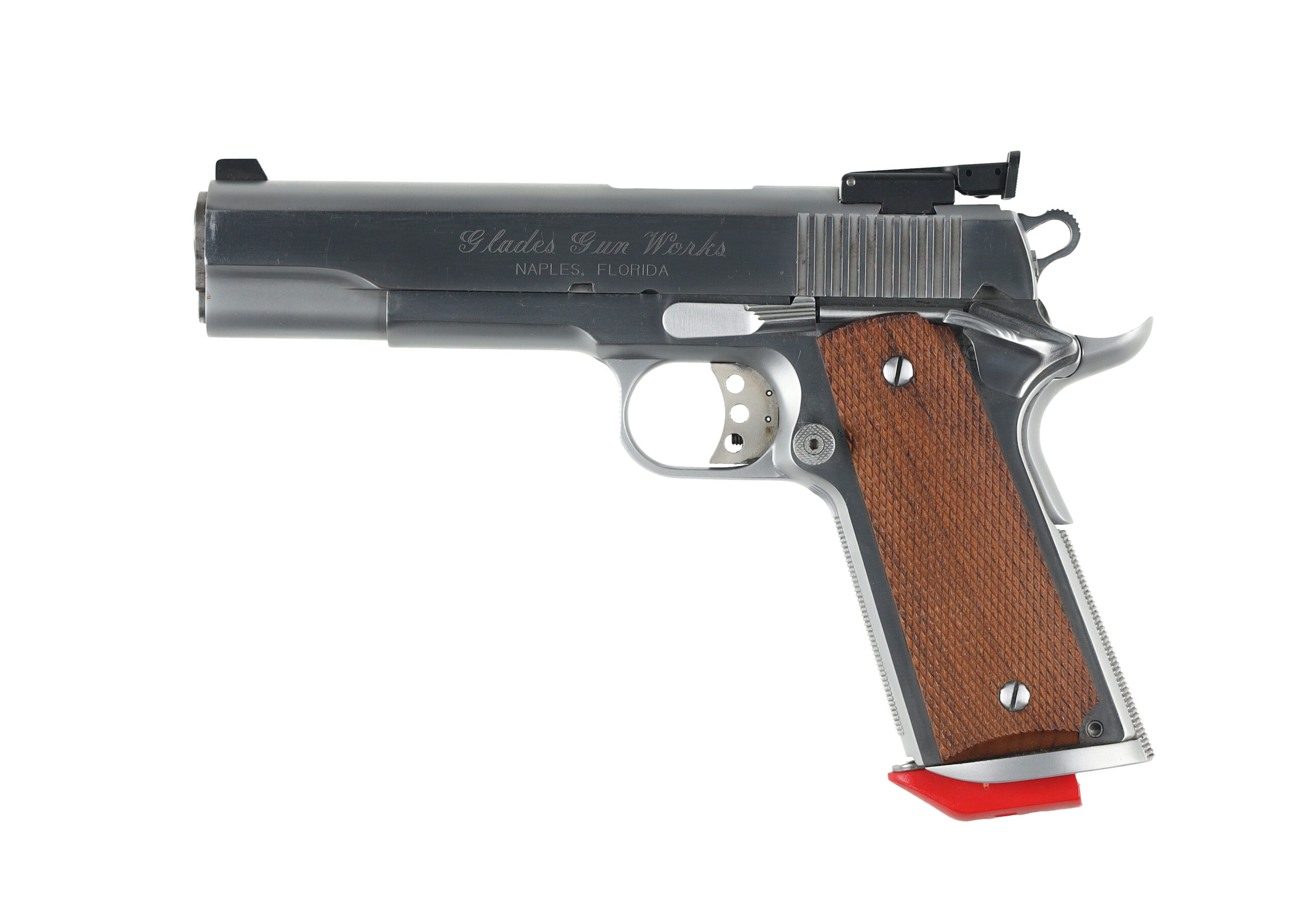 Tis Caspian Arms 1911 was custom built by Glades Gun Works in Naples Florida, overall build quality is good, with tight fitment to all parts. The only part which appears fitted poorly is the ejector, which protrudes somewhat when the slide is all of the way forward. Condition is very good, with little wear.