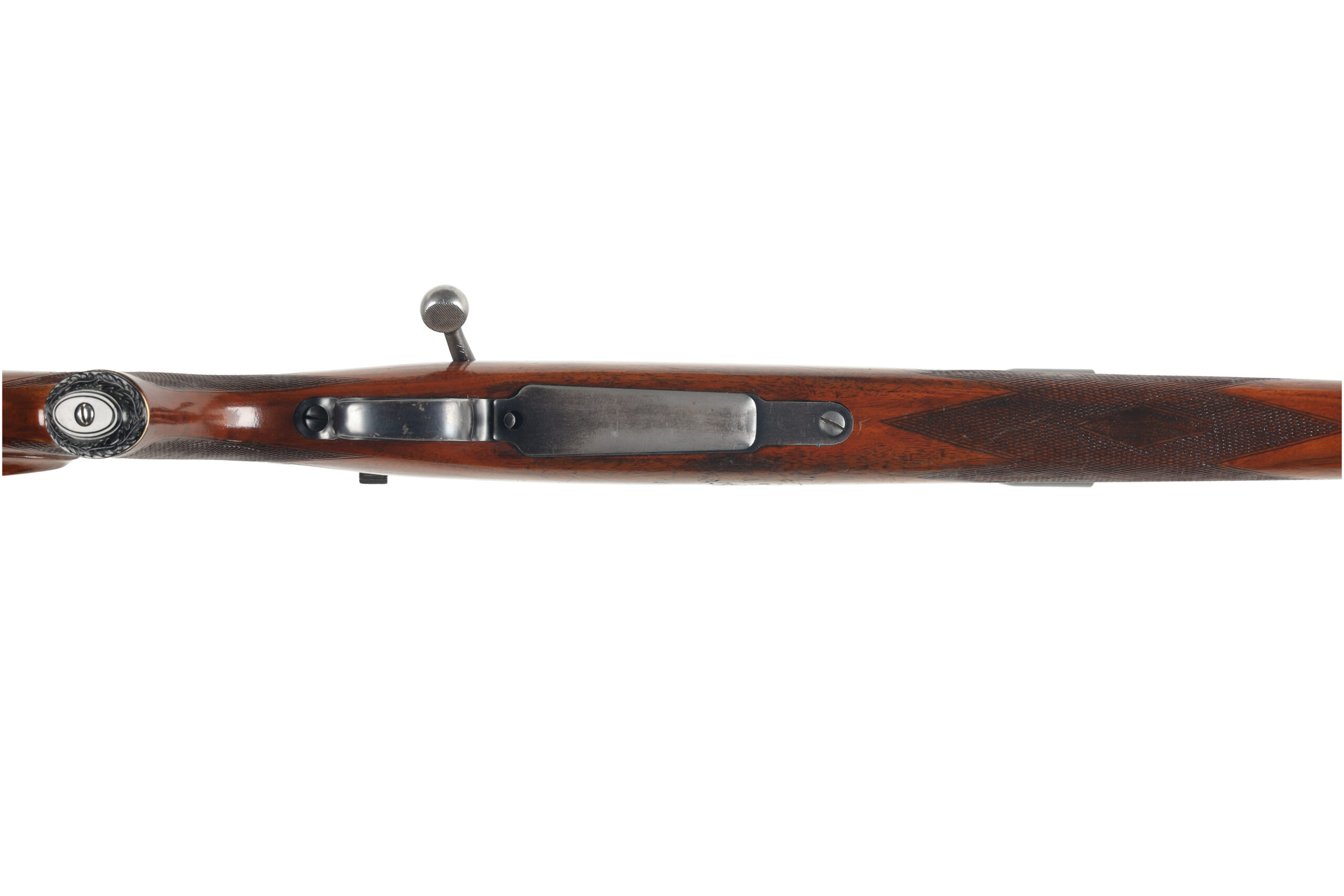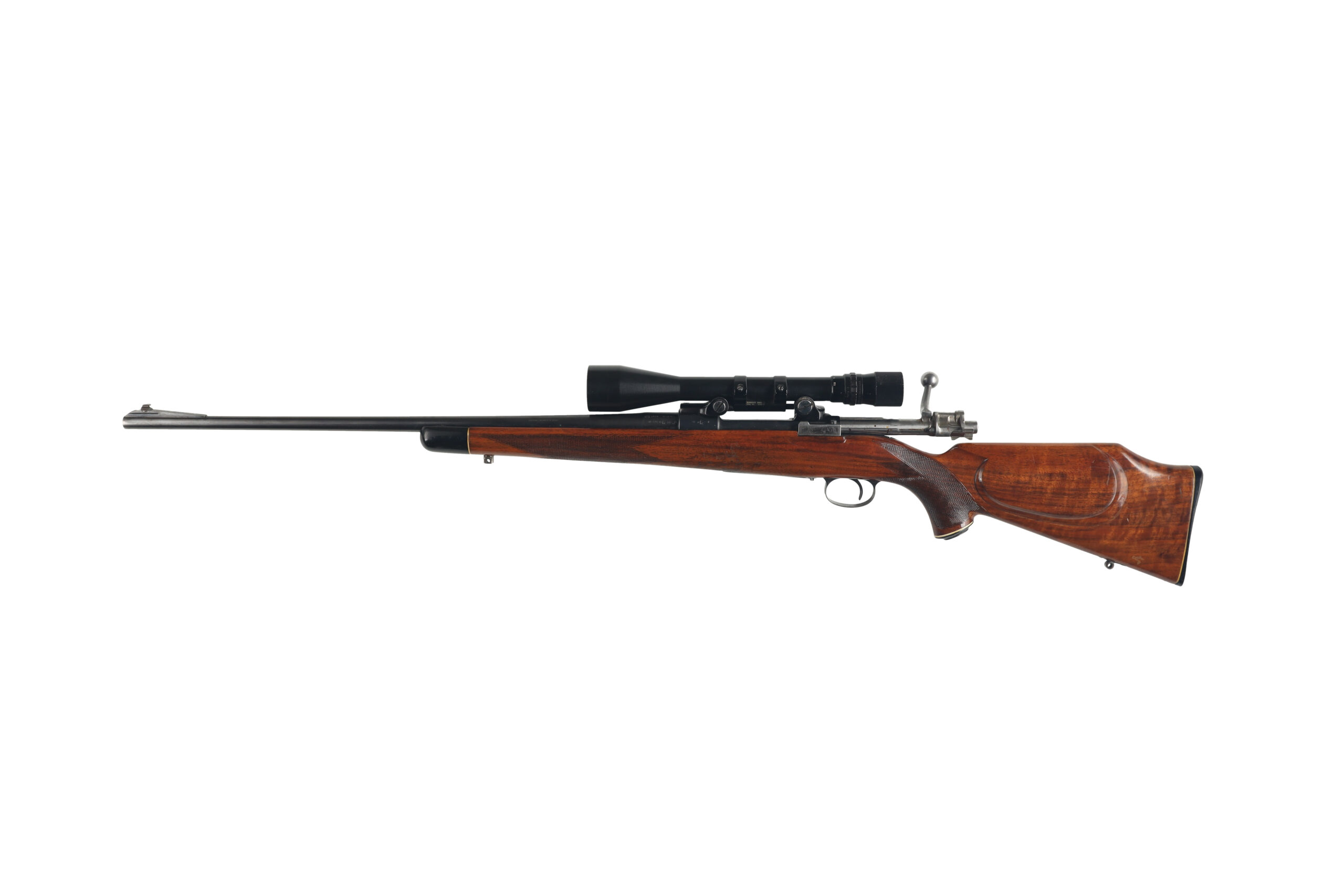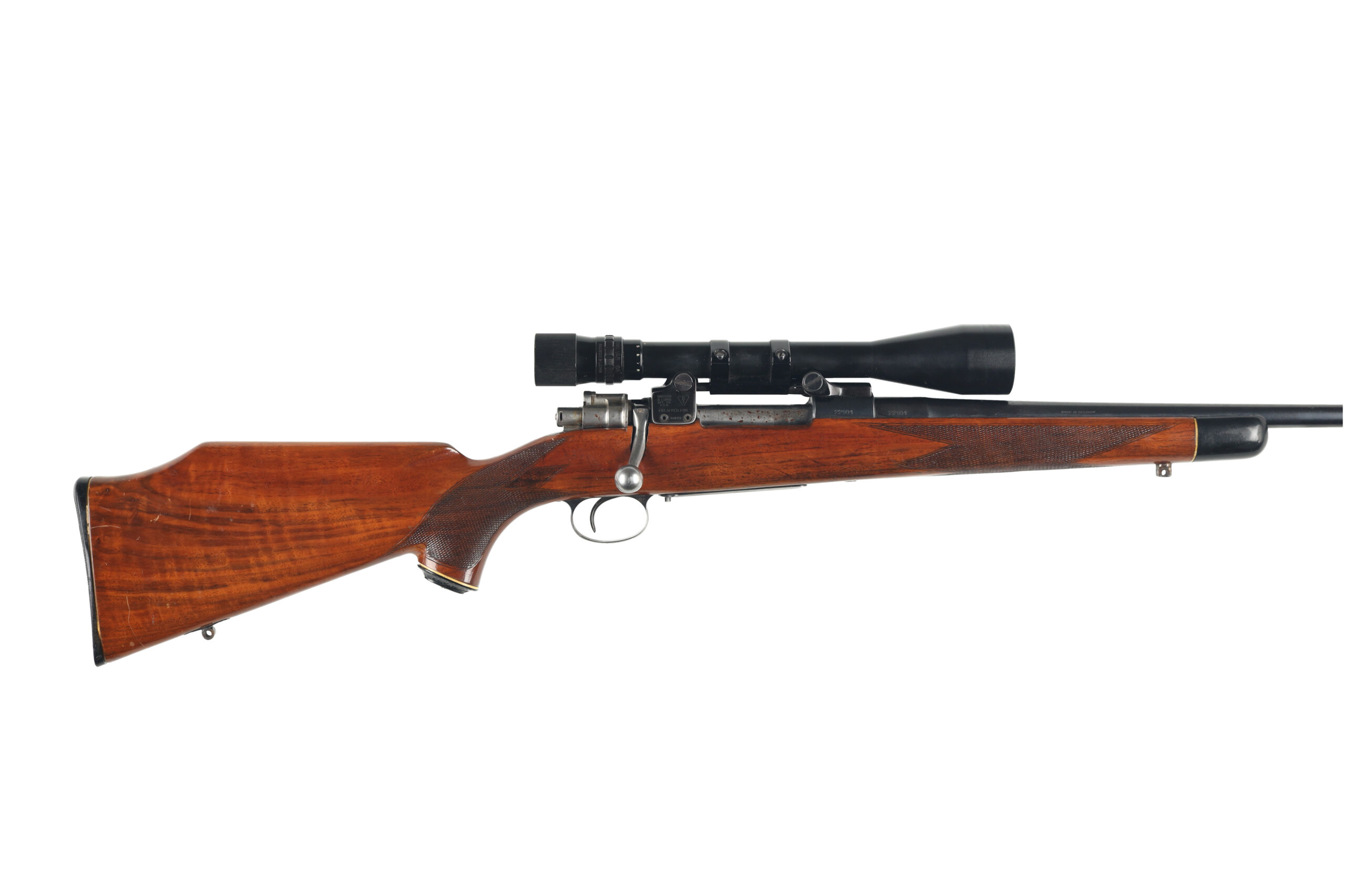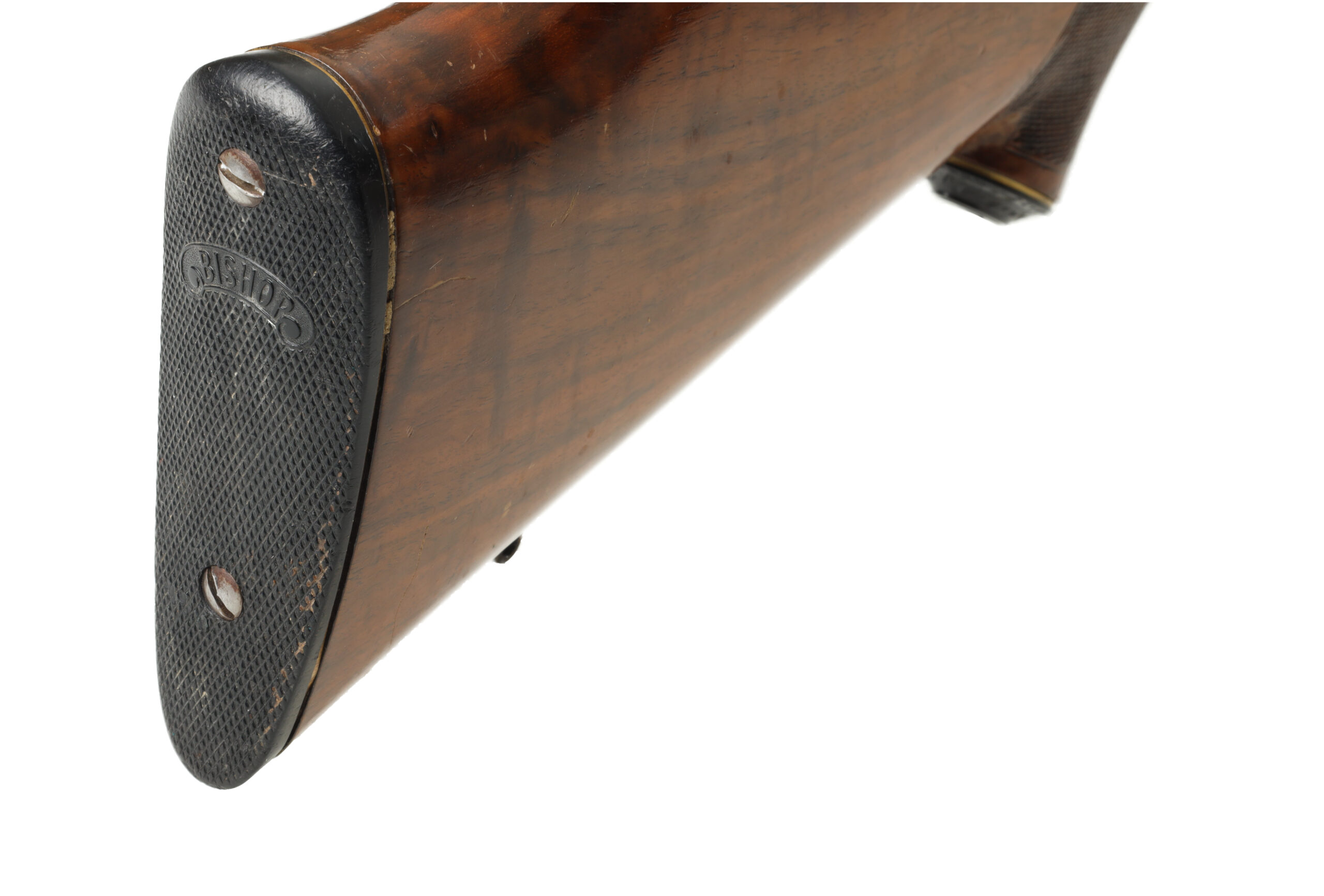This FN Mauser rifle in a Bishop stock is in good to very good overall condition, with moderate wear, bore condition is also good, with slight erosion. Comes with a Bausch & Lomb Balavar 8A optic installed.