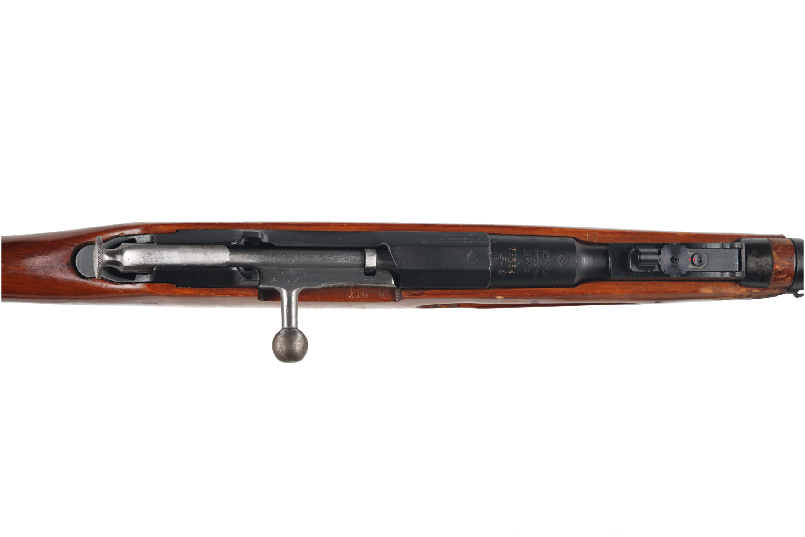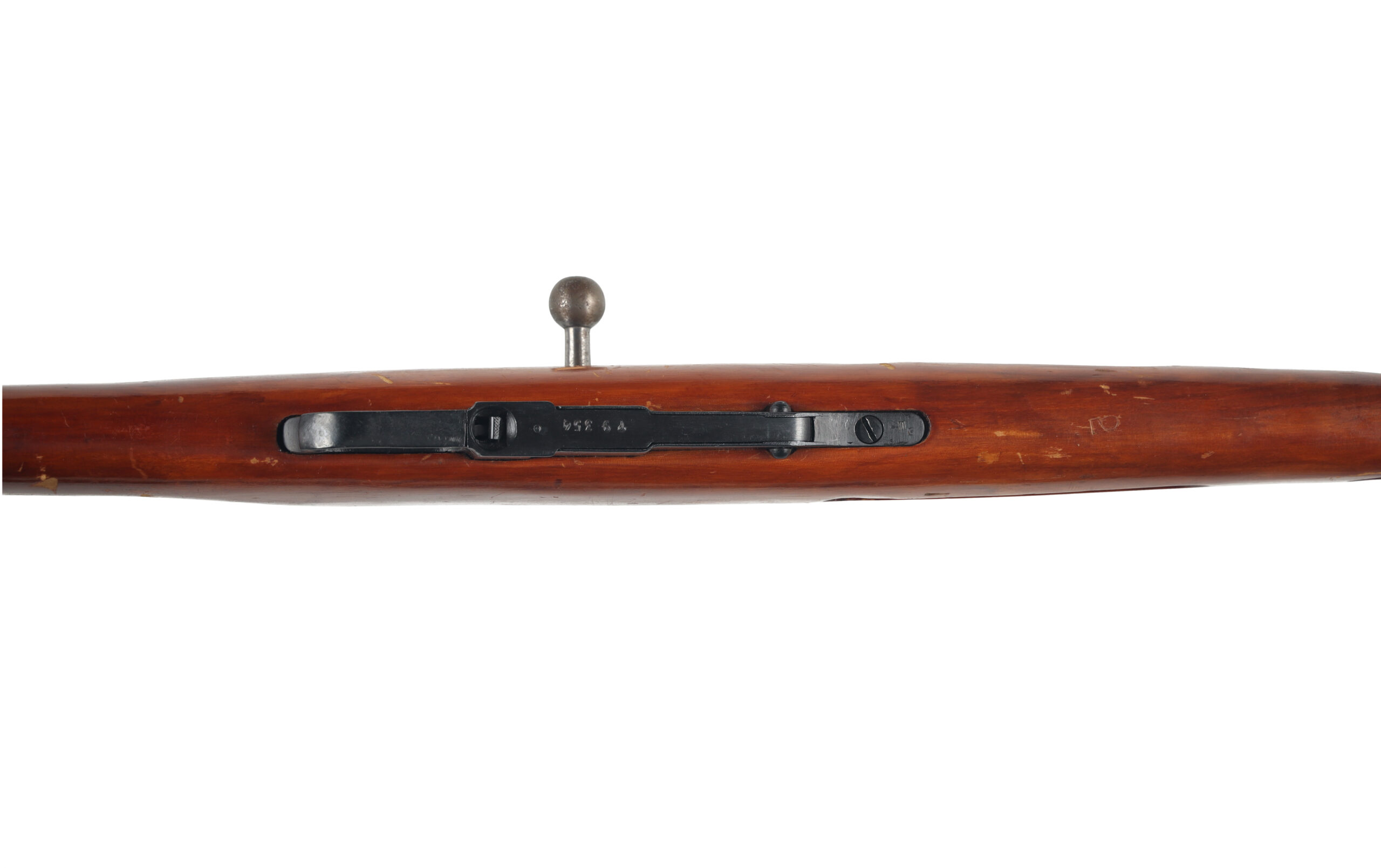 Officially named the 3-Line Rifle M1891, the Mosin rifle is one of the highest produced military rifles in existence, with over 37 million made. Through their long lifespan they have been in use by first the Russian Empire, then the Soviet Union, followed by all of their satellite nations as well as seeing use by many nations across the world as surplus and wartime aid. This Rife is a Pre 1928 Izhevsk manufactured rifle, likely a 91 or dragoon, which had received the 91-30 conversion. This rifle has likely seen a lot of use, having substantial barrel wear, to the point that the muzzle needed to be back bored to maintain accuracy. After being imported by Century, one of its owners added a set of peep sights for use in target shooting, indicating at least moderate accuracy potential. Overall condition is good, with no major faults in the stock, and only light external wear to the metal parts.