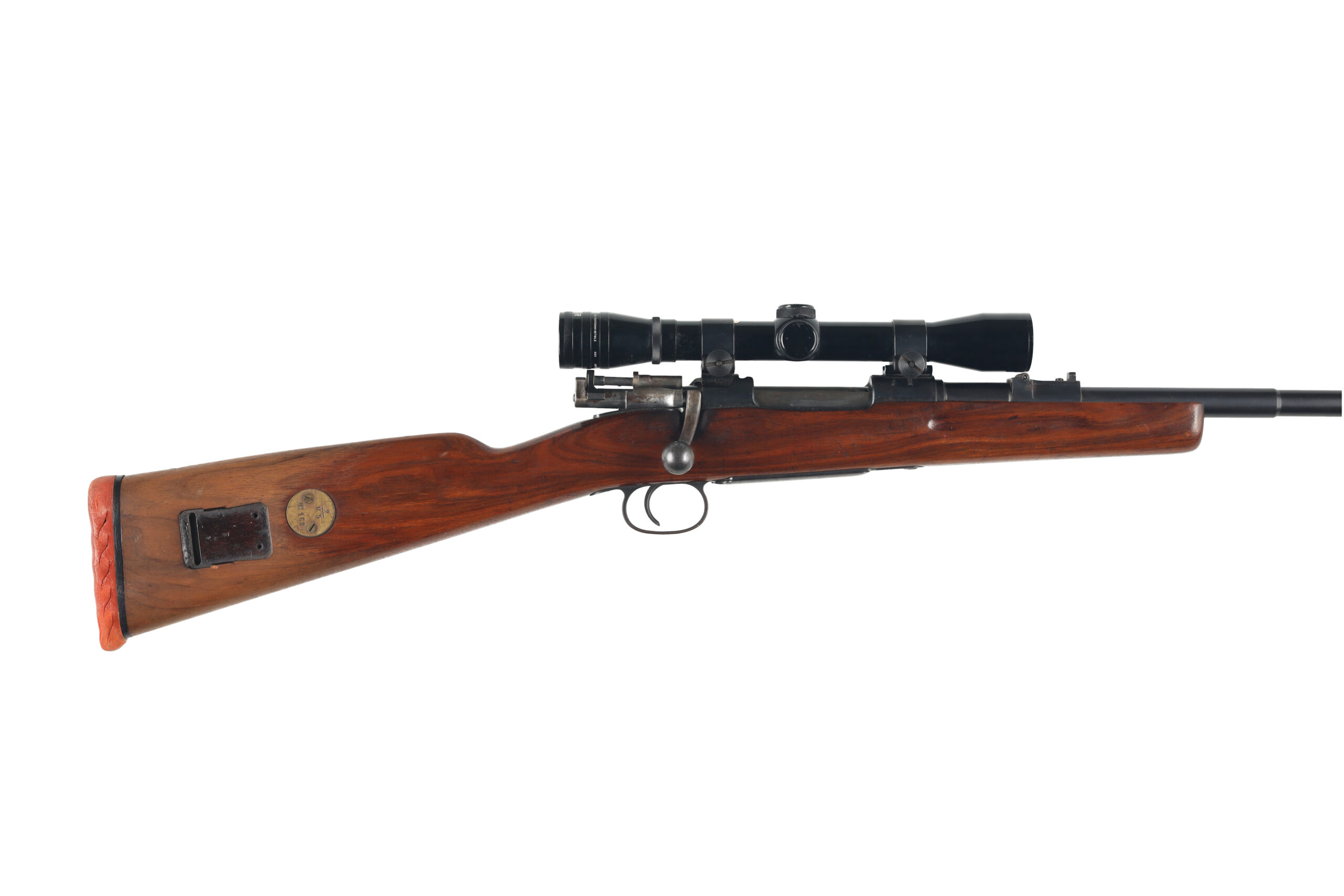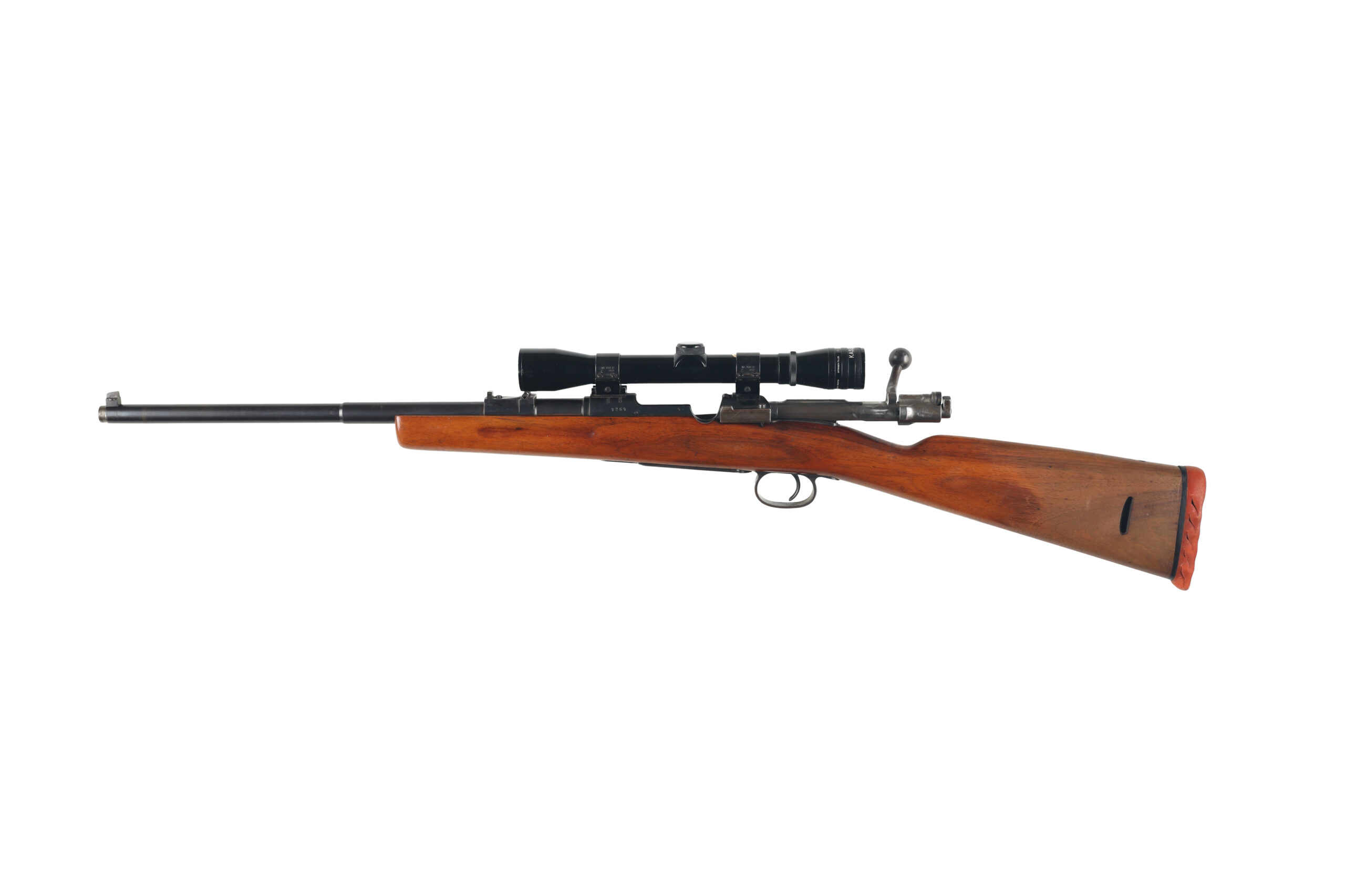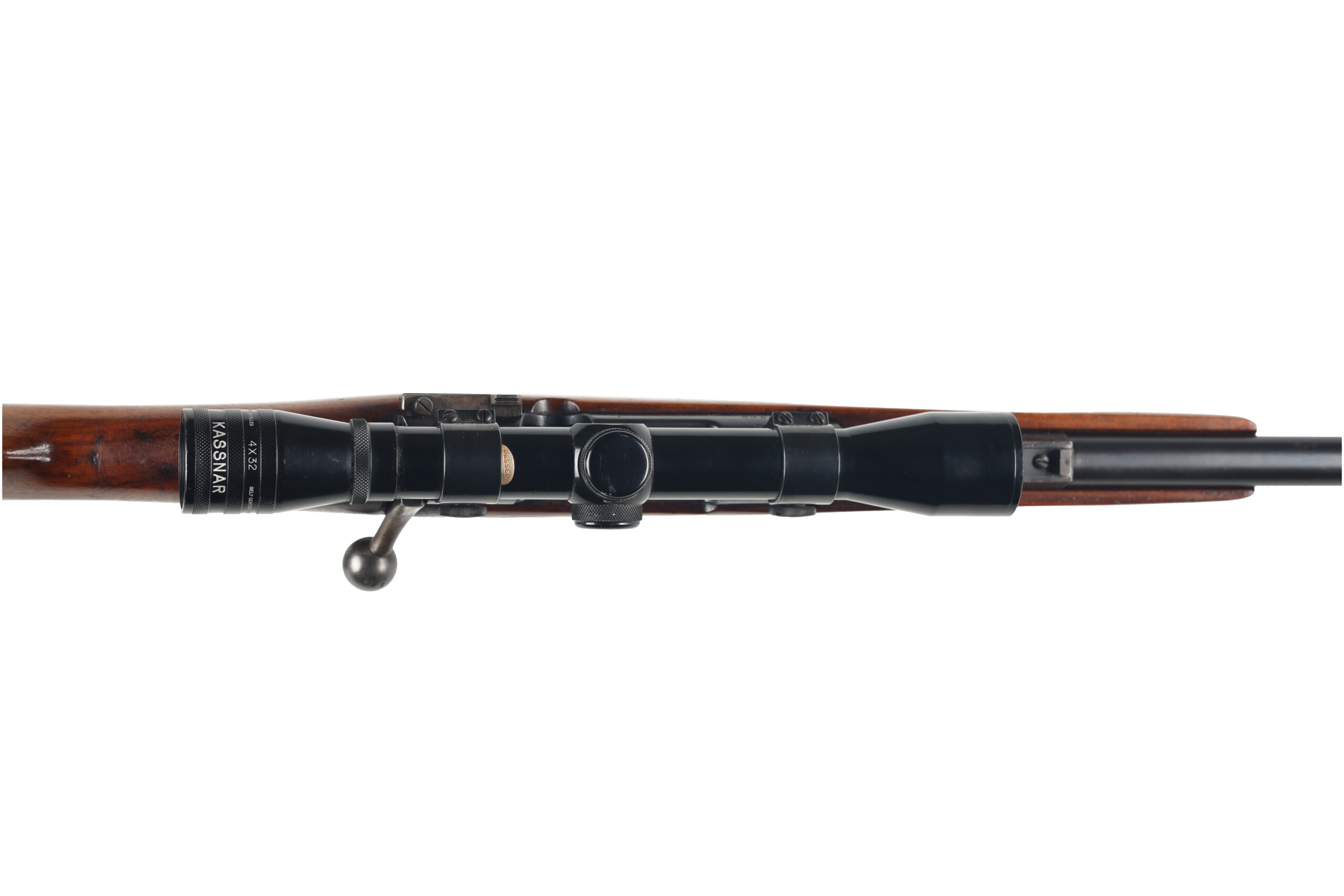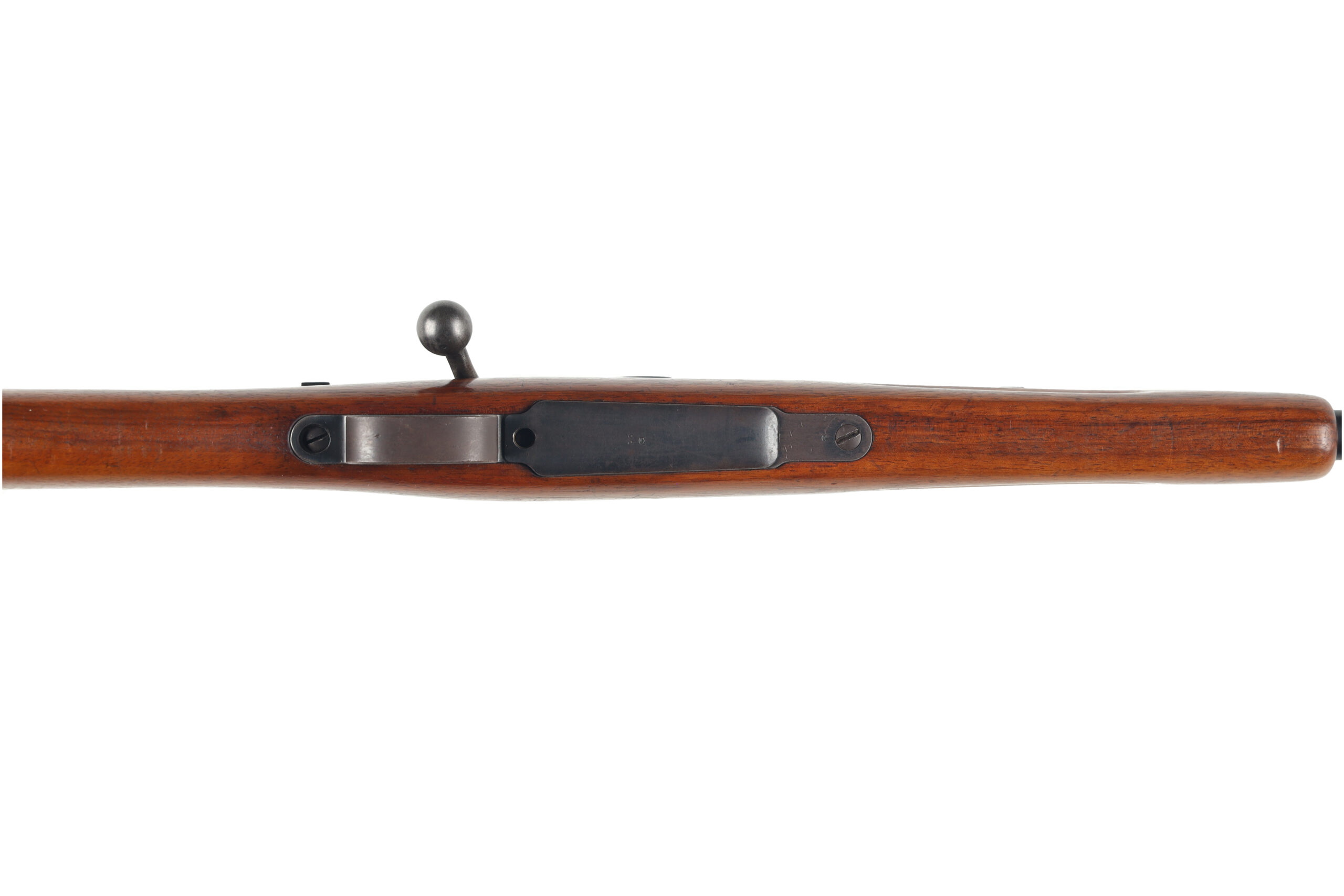 This rifle started its life as a Swedish, model of 1894 Carbine, but like many military rifles after the war, was crudely cut down into a light weight hunting rifle. The barrel condition is good, with light erosion and the stock has been shortened and re contoured. The receiver has also been drilled and tapped to fit a cheap Japanese optic.