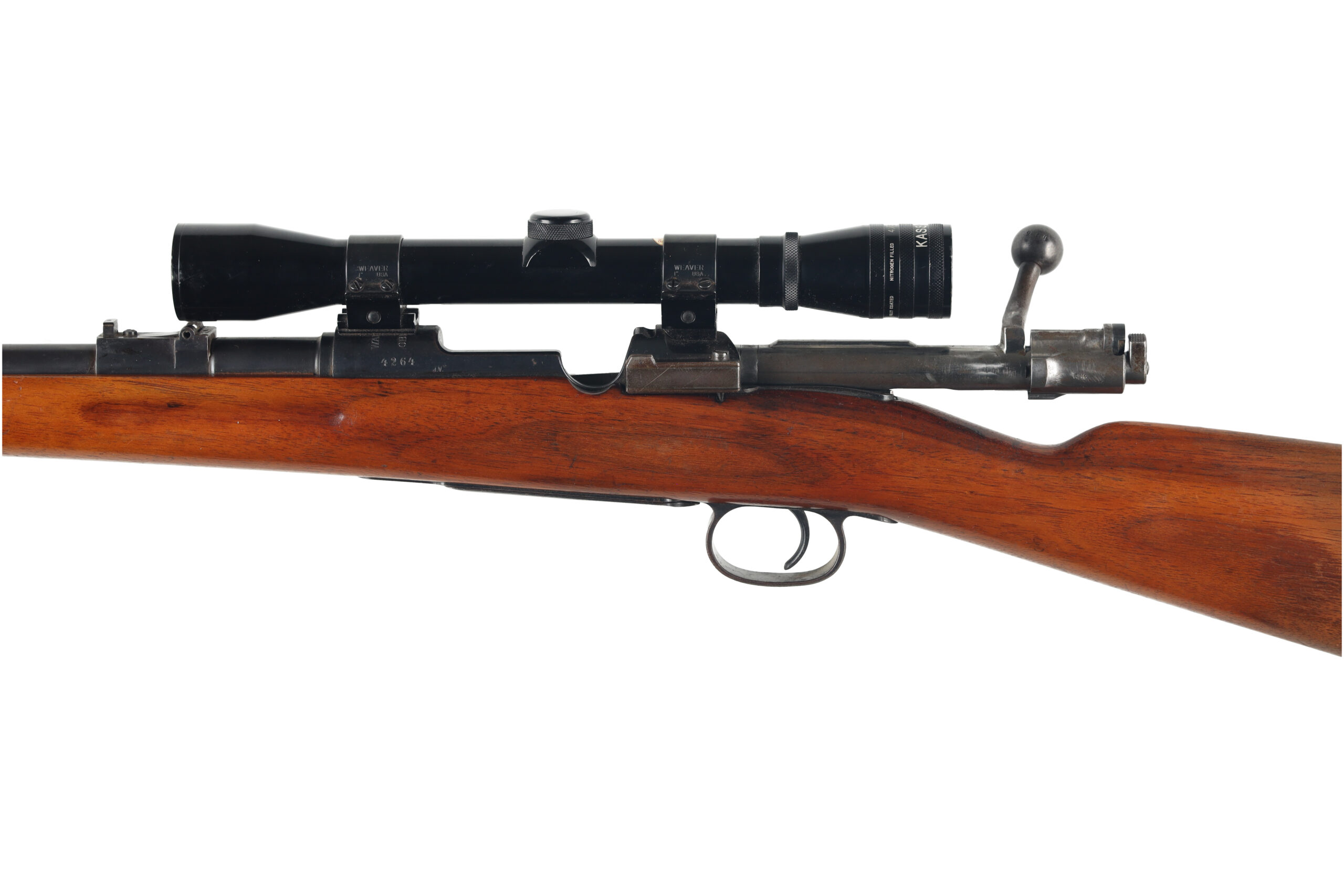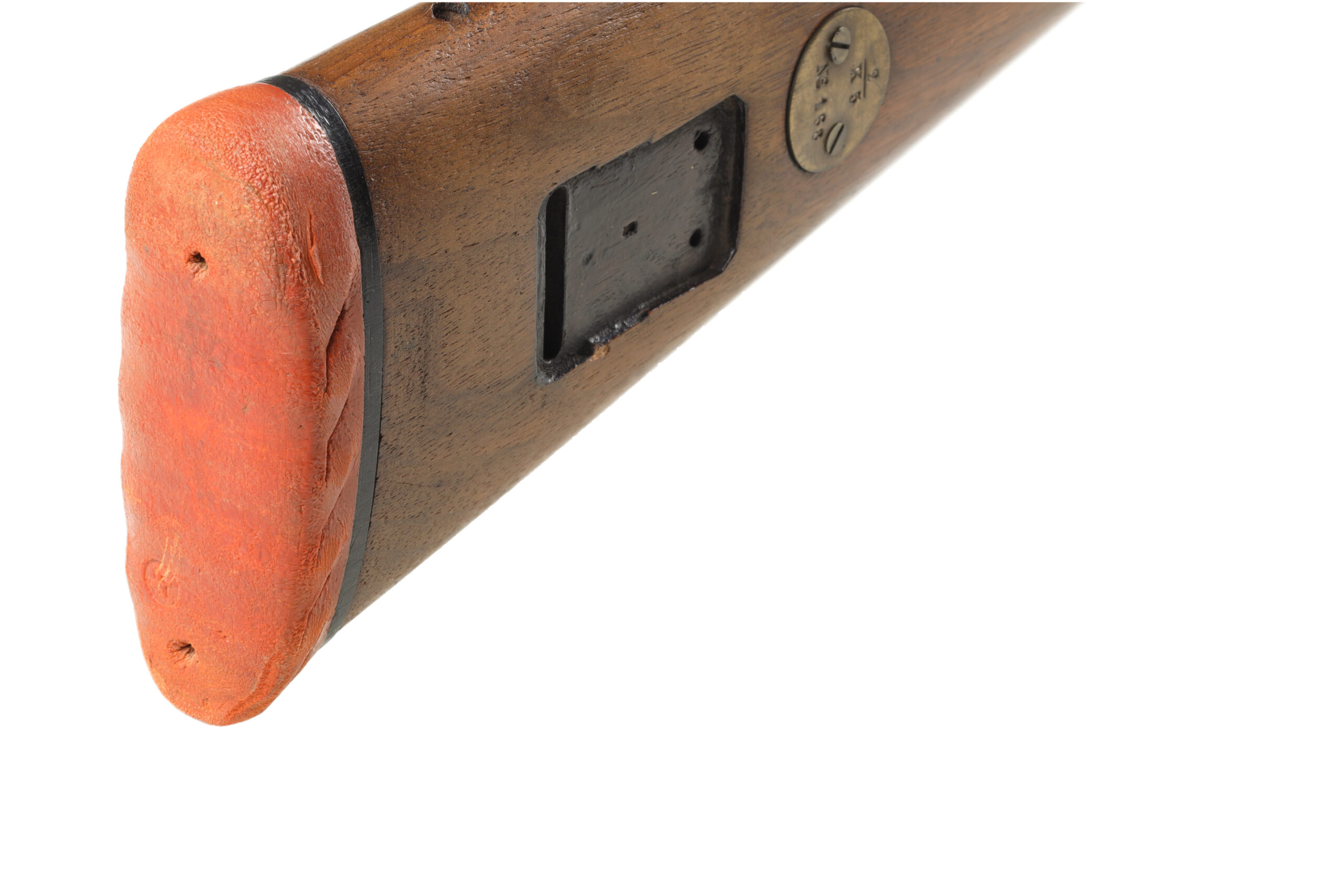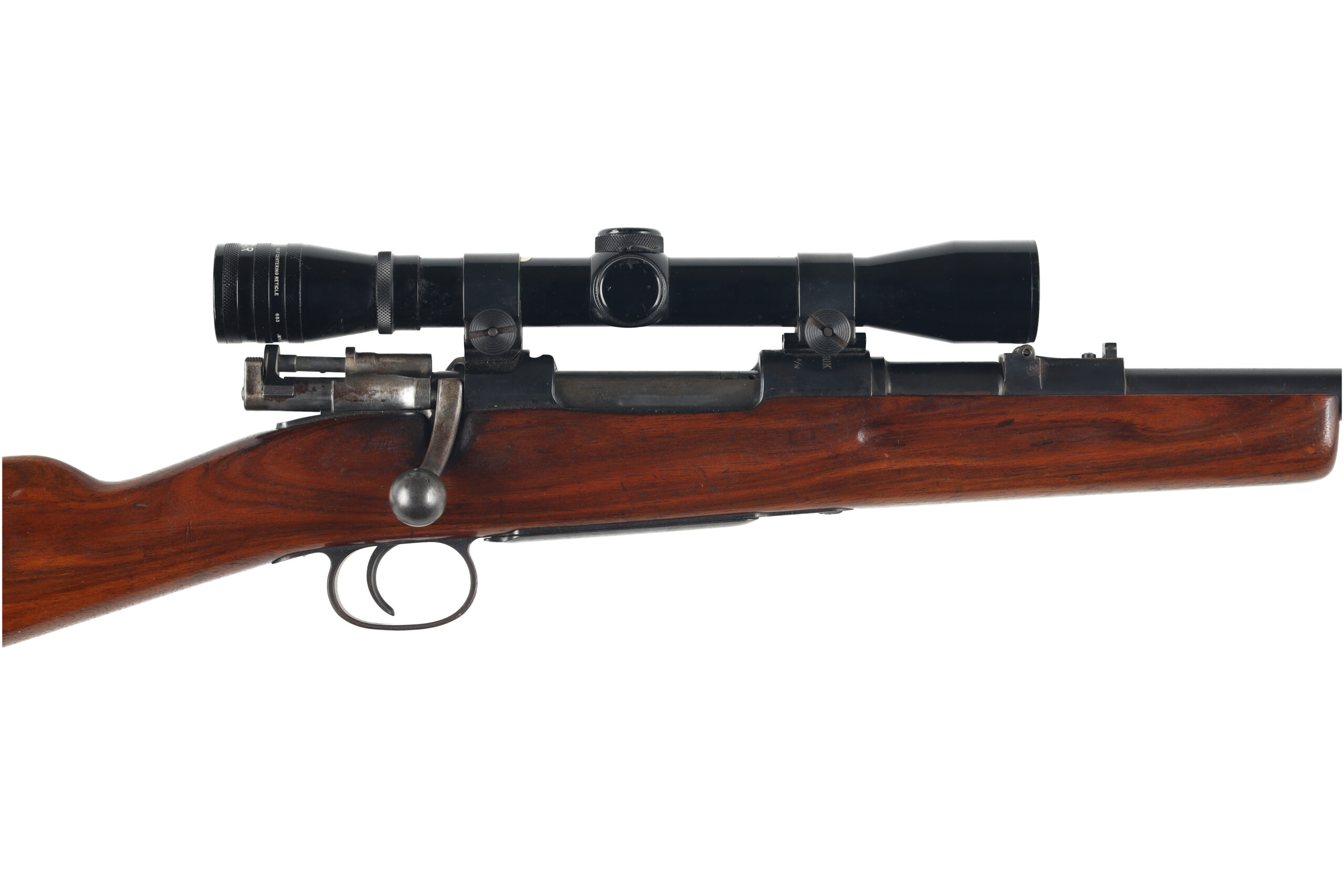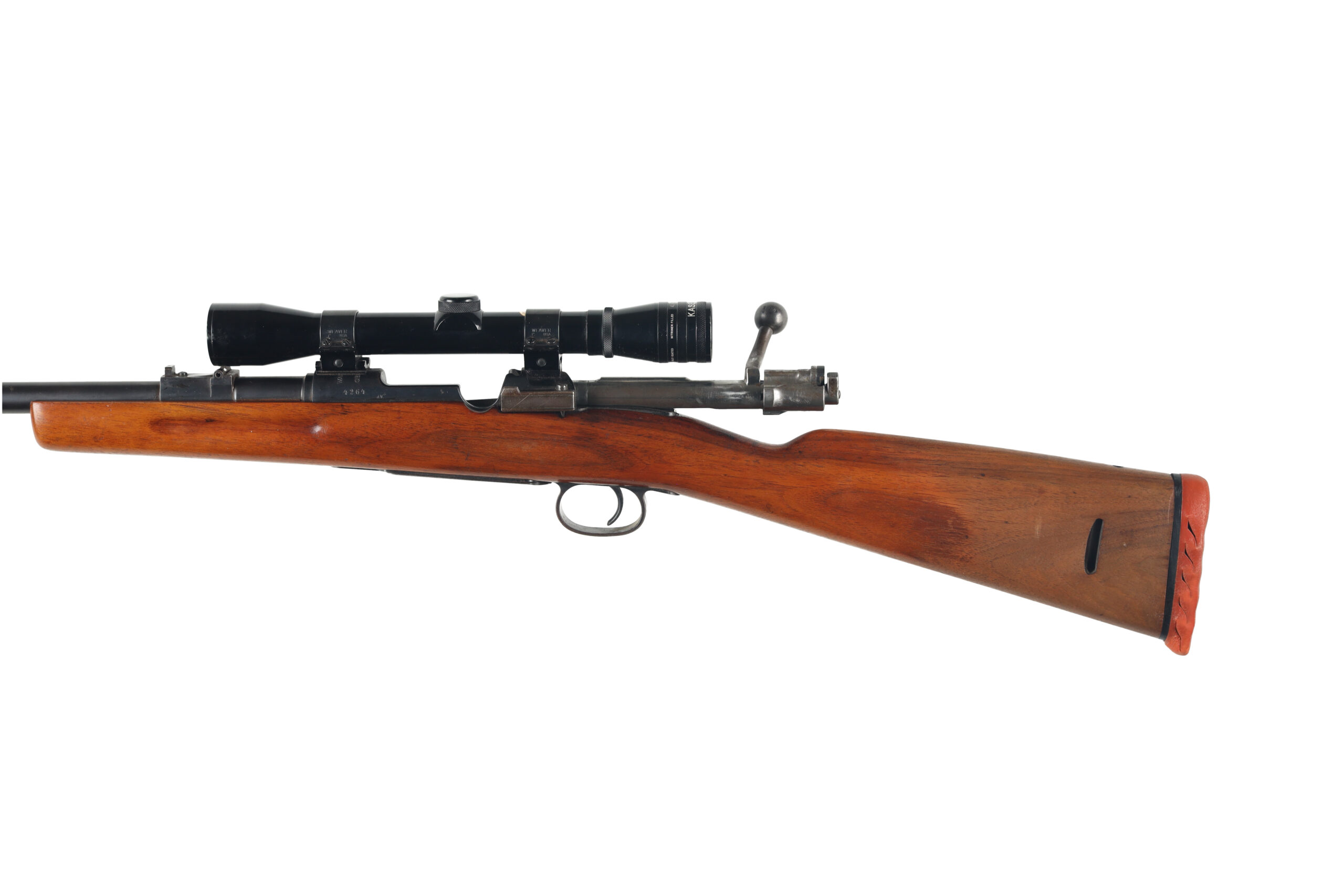This rifle started its life as a Swedish, model of 1894 Carbine, but like many military rifles after the war, was crudely cut down into a light weight hunting rifle. The barrel condition is good, with light erosion and the stock has been shortened and re contoured. The receiver has also been drilled and tapped to fit a cheap Japanese optic.