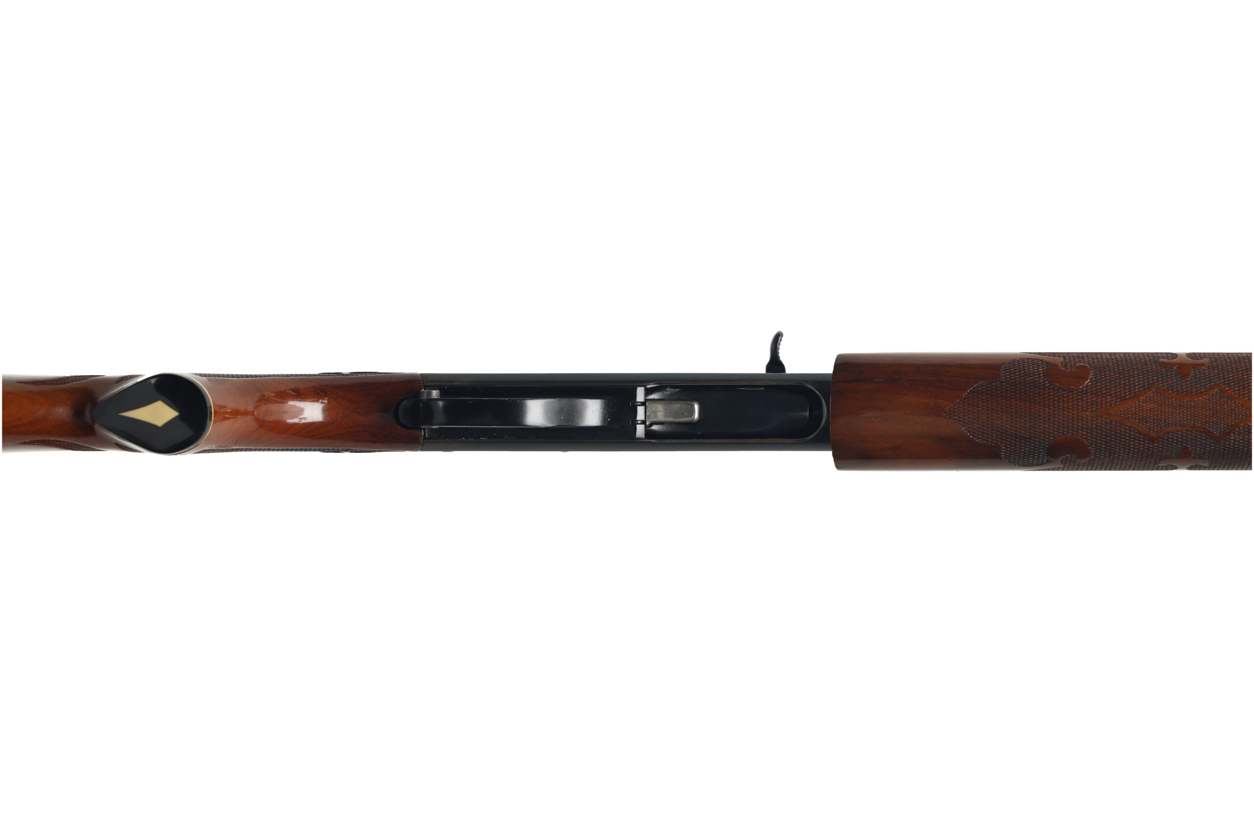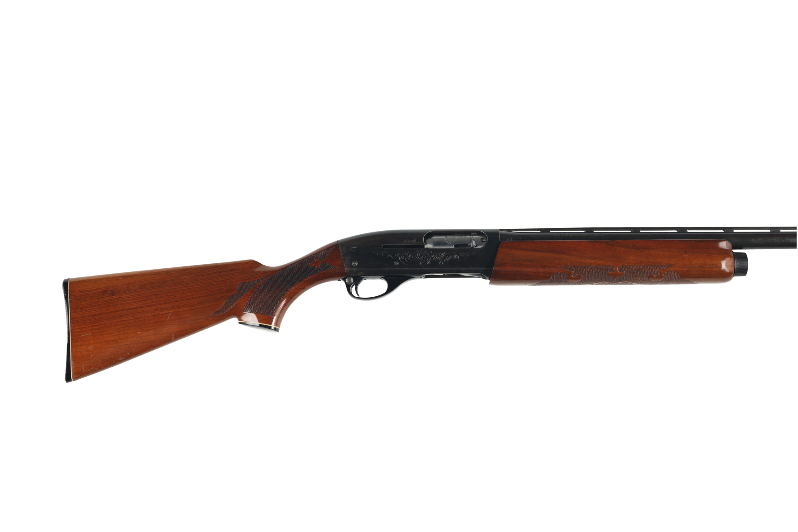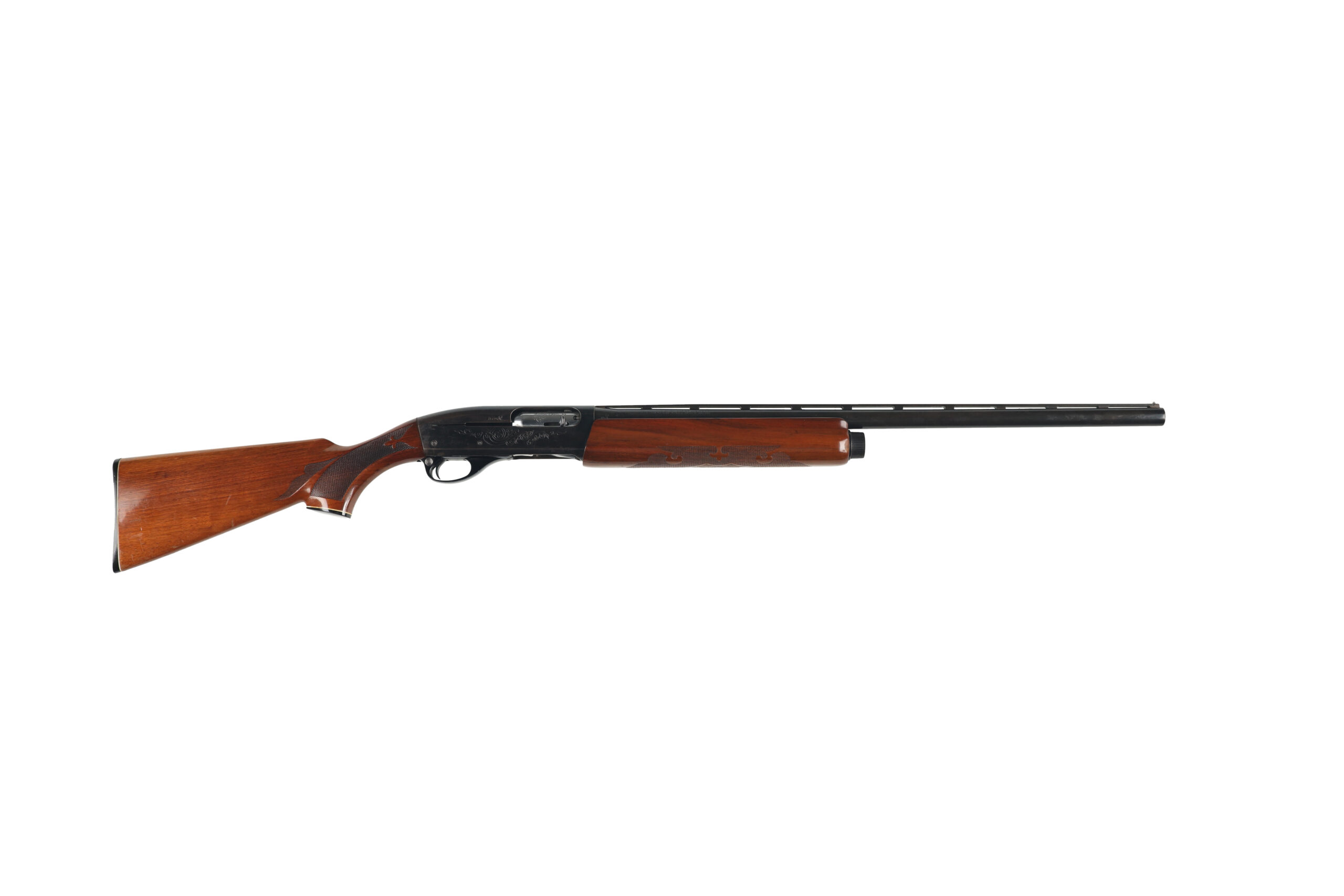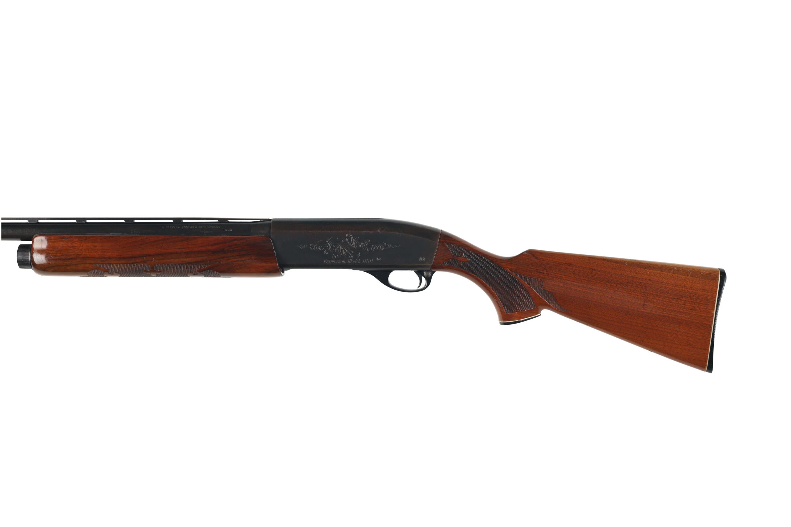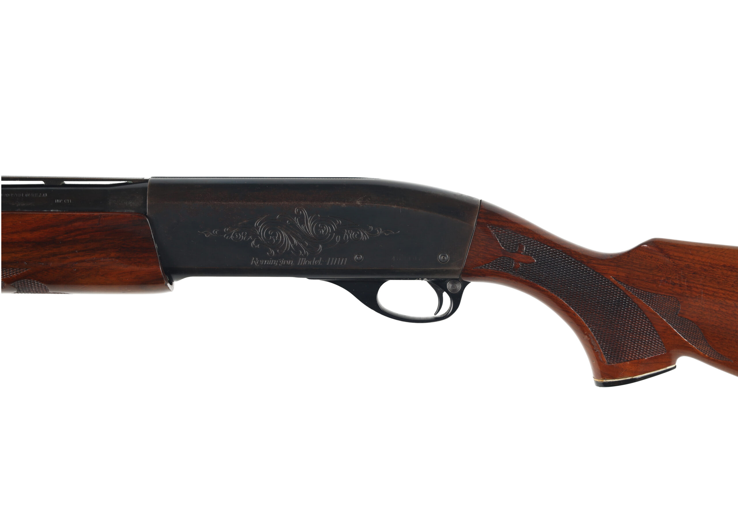 The Remington Model 1100 is one of the most popular semi automatic shotguns in the U.S.A with over 4 million sold. This used example is in fair to good overall condition, with moderate surface wear and spotted corrosion across much of the metal parts. The function, however appears good and there are signs that the internal parts were well greased before storage.