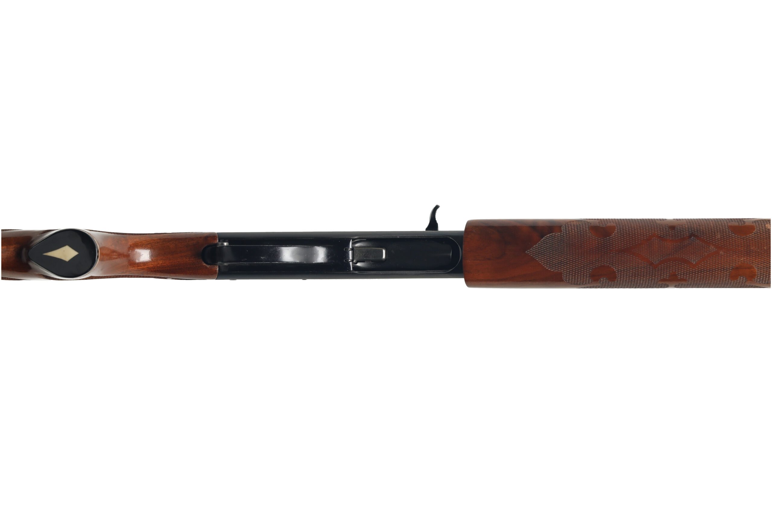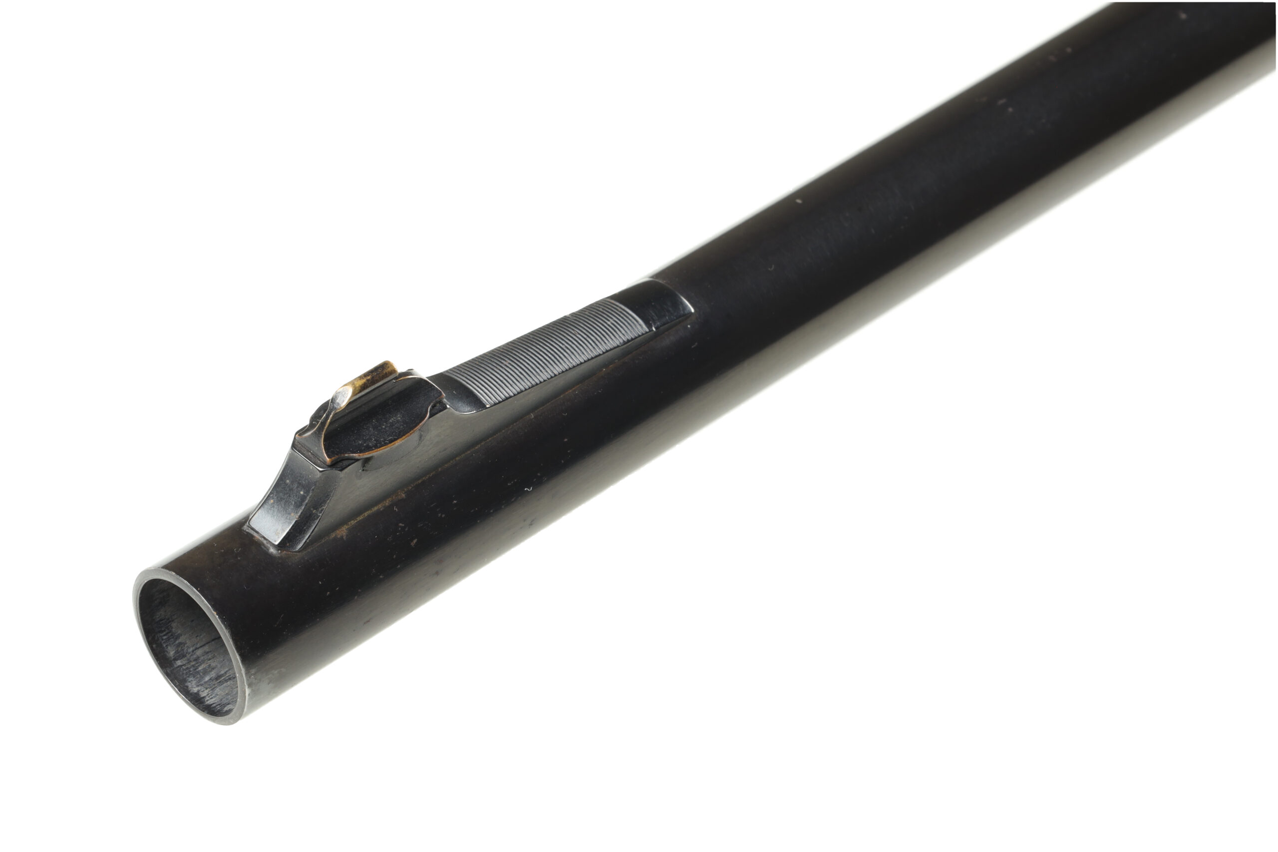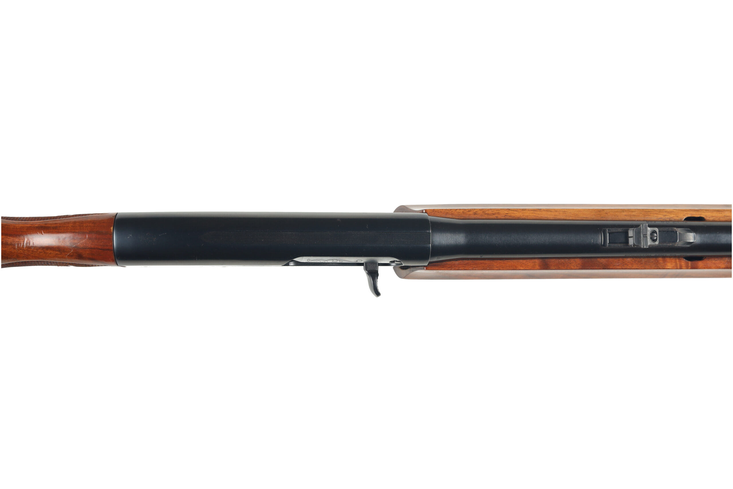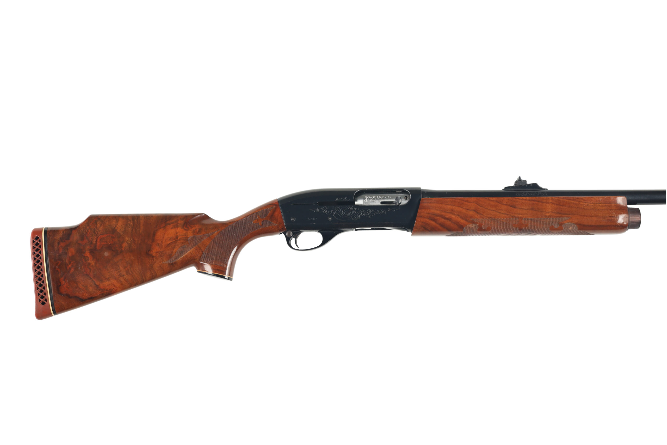 The Remington Model 1100 is one of the most popular semi automatic shotguns in the U.S.A with over 4 million sold. This used example, with a Trap marked receiver and a buck barrel, is in very good overall condition, with little wear but a few scattered spots of corrosion on the steel parts.