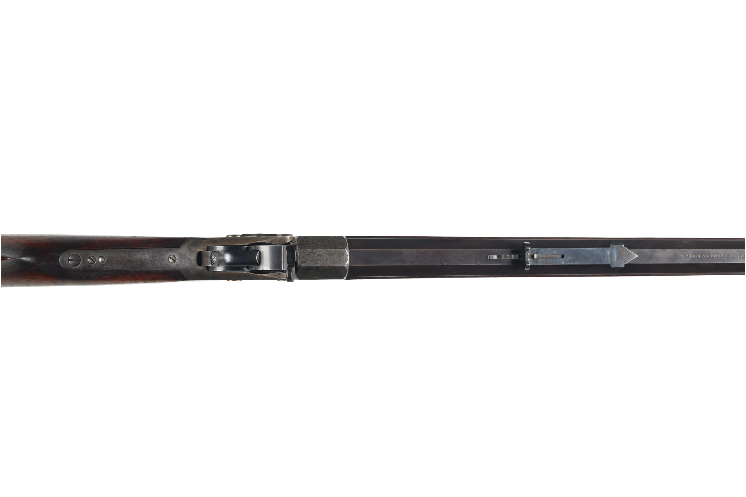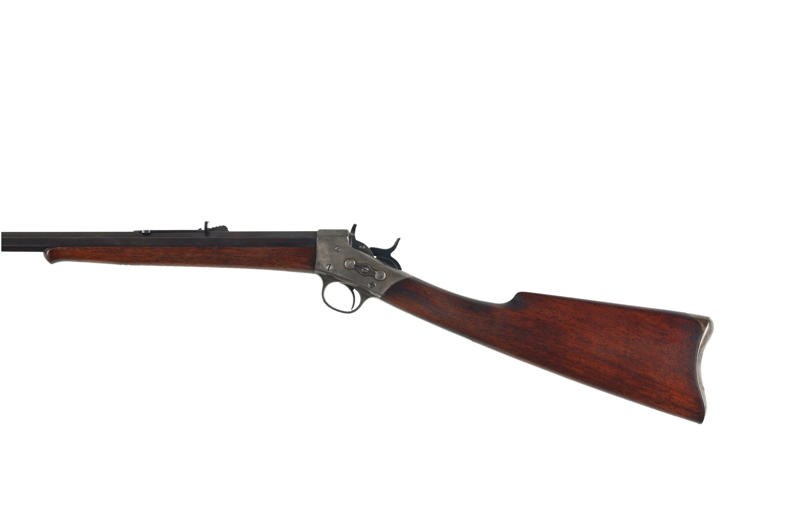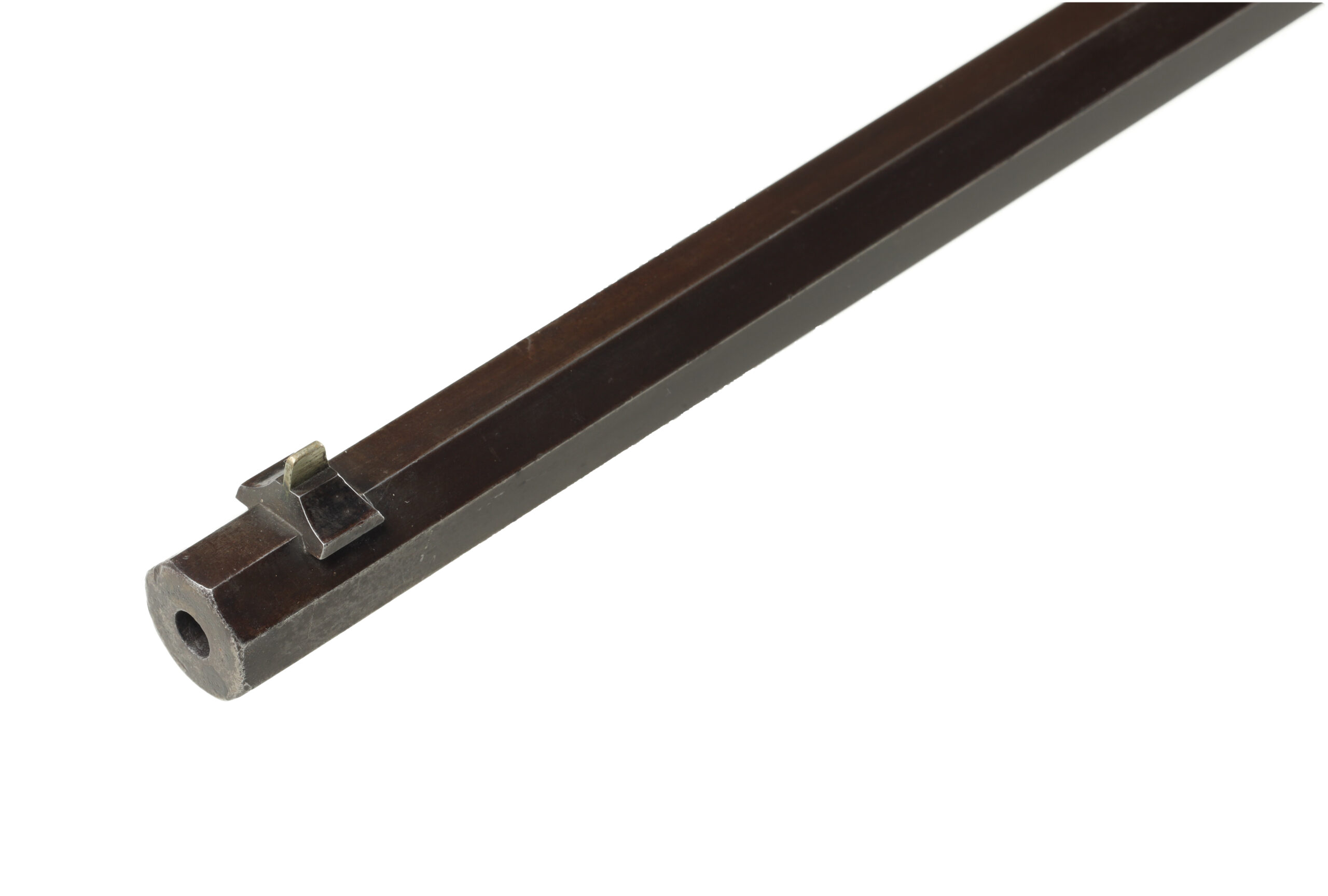 The Remington Model 2 Rolling block sporting rifle was manufactured from roughly 1873 until 1910 and was offered in a variety of cartridges, ranging from .22 to .38 in diameter. Overall condition of this example, chambered in .22 short, is very good, with the most notable of wear being inside the bore, which has pitted somewhat near the muzzle. The stock has also started cracking at the rear of the tangs.