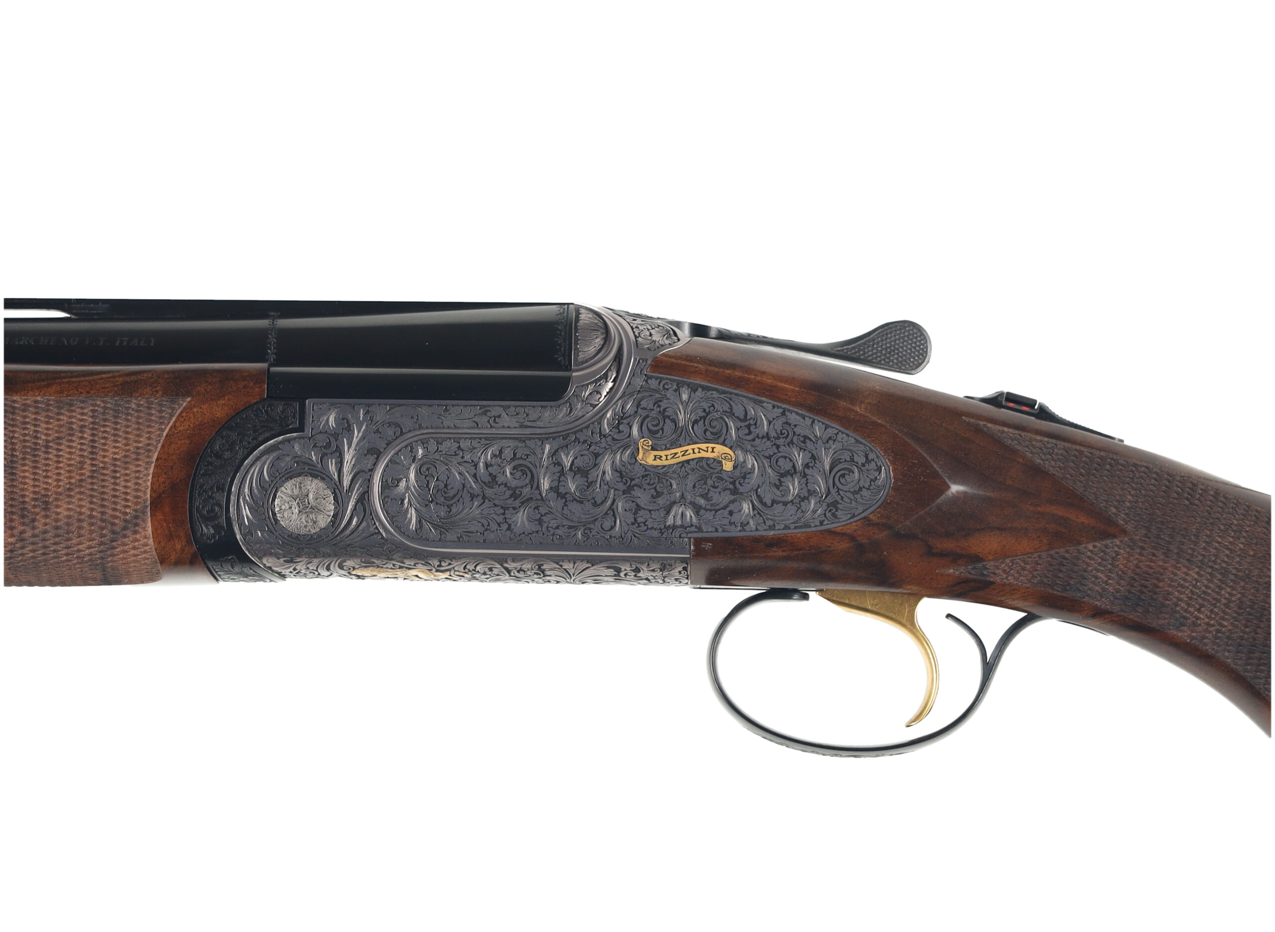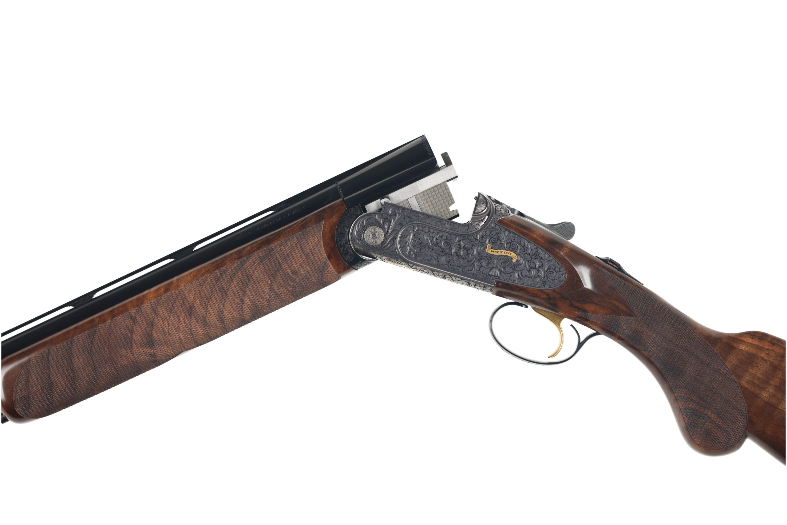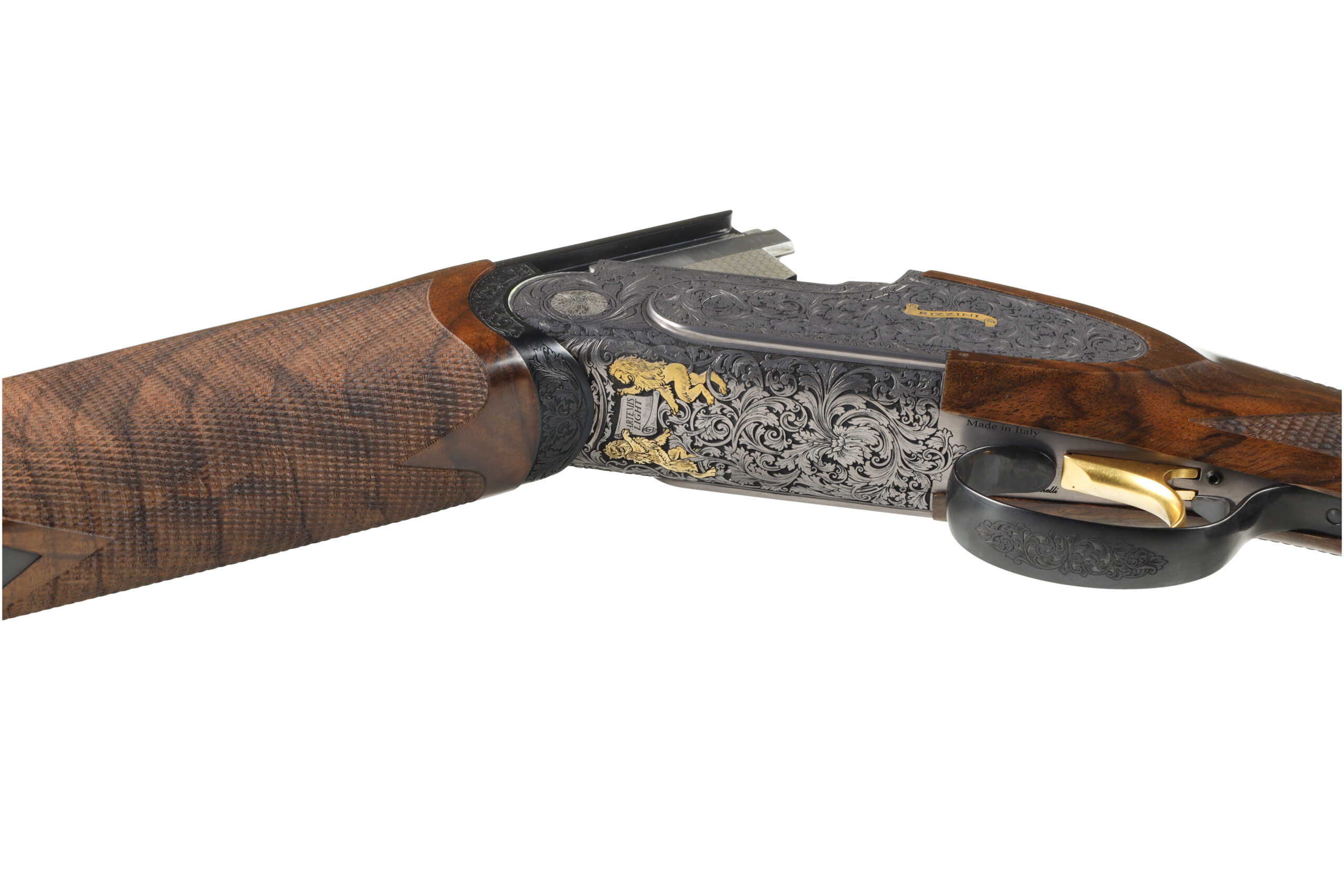 The Rizzini Artemis light features impressive scroll engraving on a side plated alloy receiver with titanium internal reinforcements. The aesthetics of the receiver perfectly complement the flowing lines of the figured turkish walnut stocks, fitted with a prince of wales grip and checkered wooden buttplate. the elegant lines and light weight of this shotgun make it the perfect upland game gun.