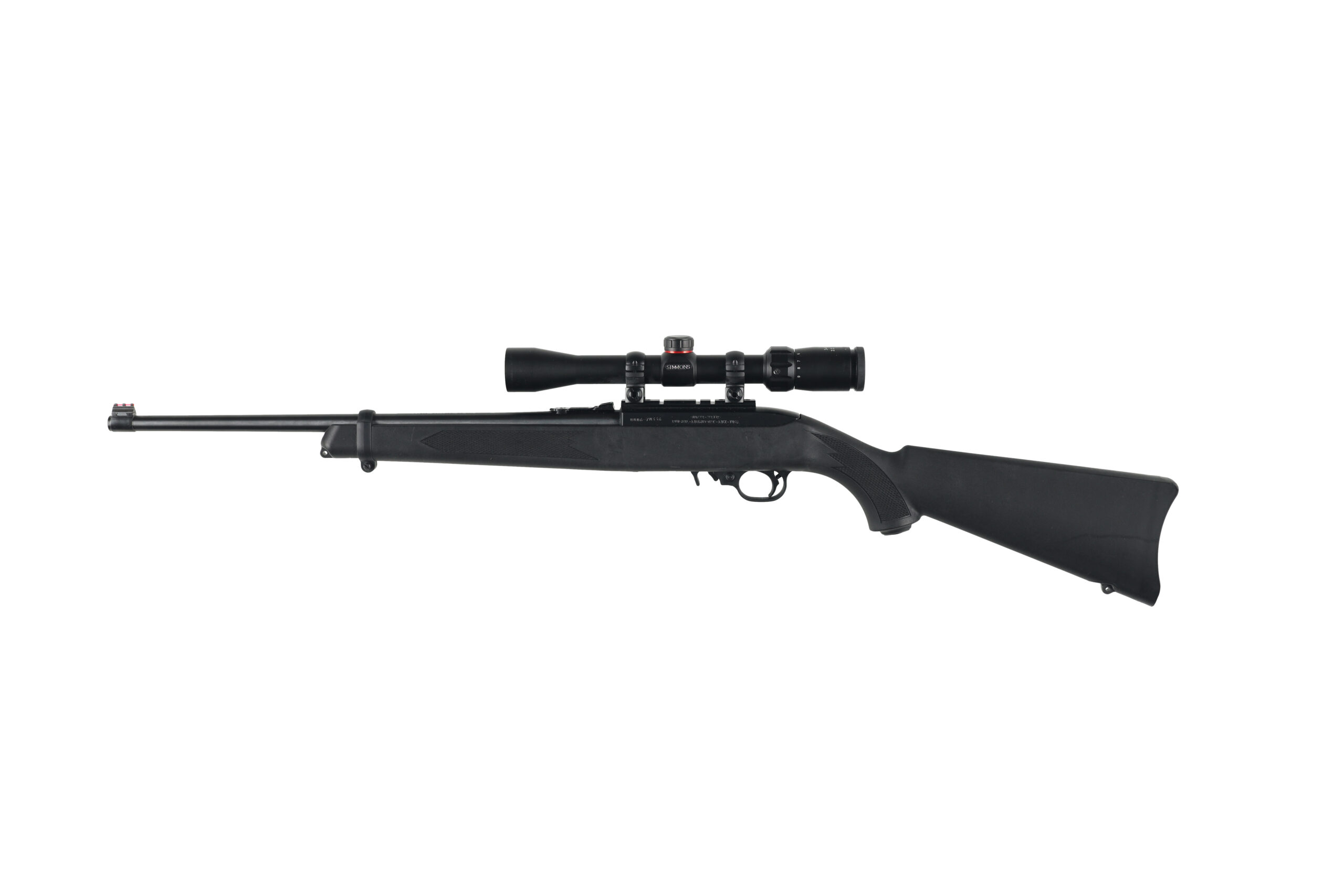 The Ruger 10-22 is one of the most popular .22 Cal sporting rifles on the market today. This polymer stocked example is in good to very good overall condition and comes with a Simmons 3-9x scope installed.