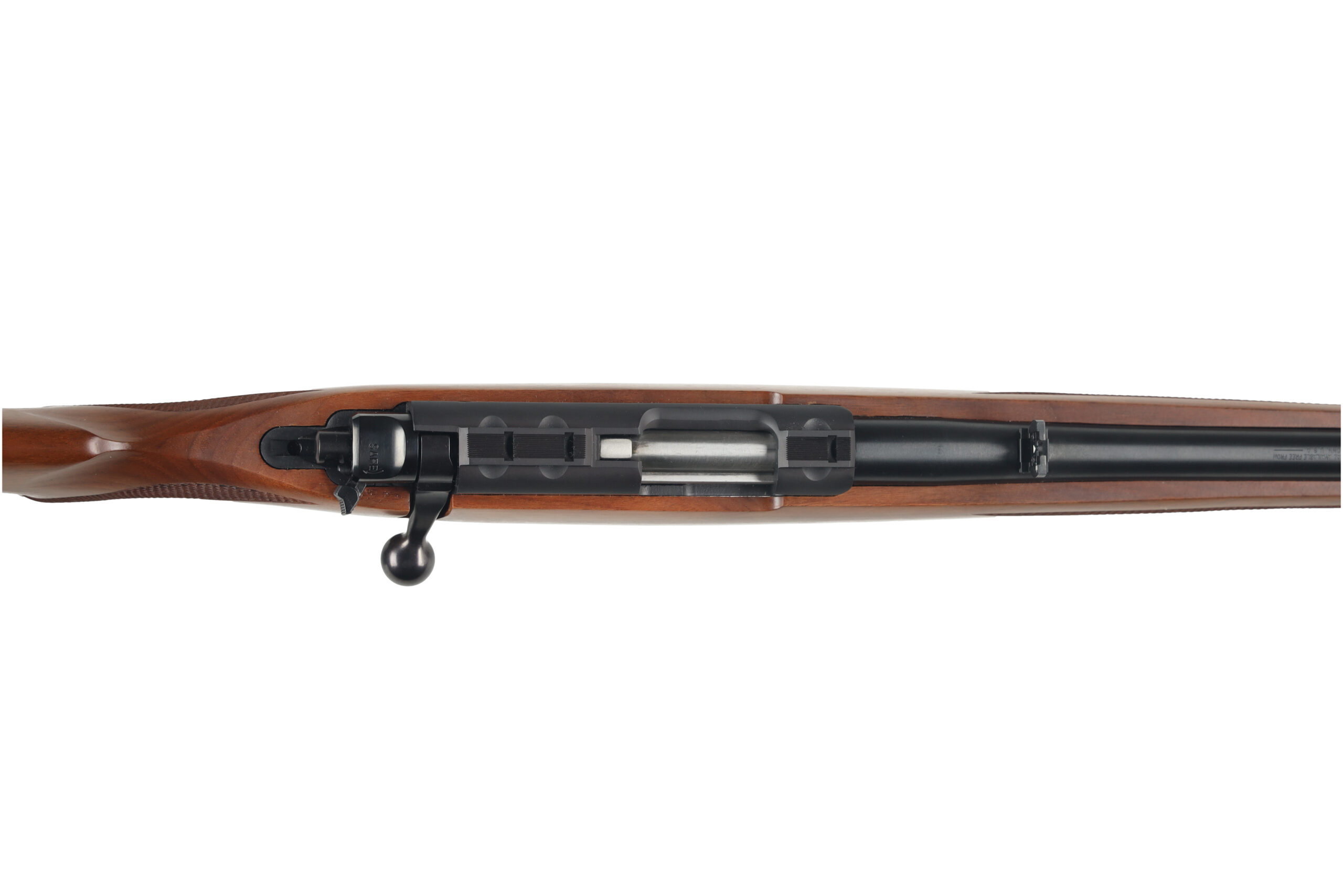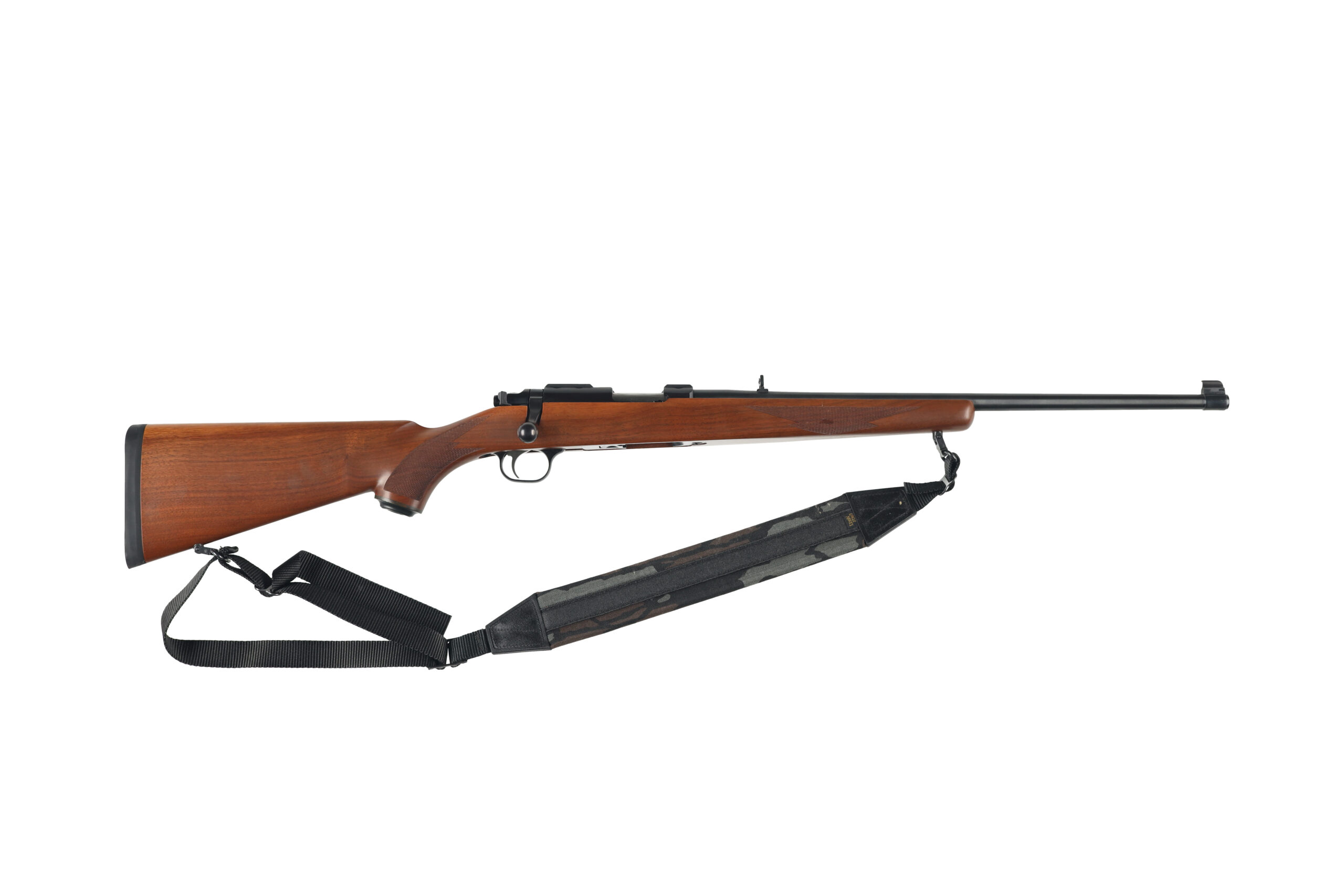 The Ruger 77-22 is based on the overall design layout of the larger M77 rifle but utilizing smaller cartridges and a rotary magazine. This example is in very good to excellent condition with little wear. comes with factory scope mounts and no magazines.