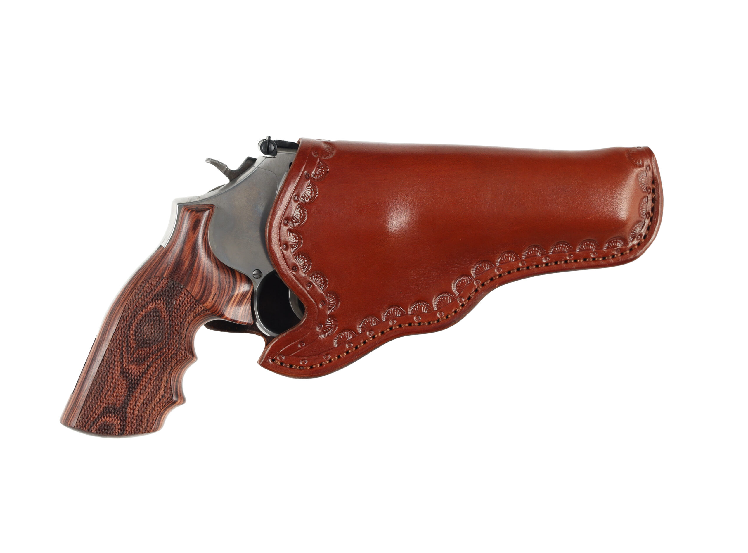 The Smith & Wesson 617-6 is a k frame revolver chambered in .22 Long Rifle, making it perfect for training or plinking when ammunition cost or recoil is a concern. This used example is in very good overall condition with only minor wear, and comes equipped with Hogue hardwood grips as well as a leather holster.