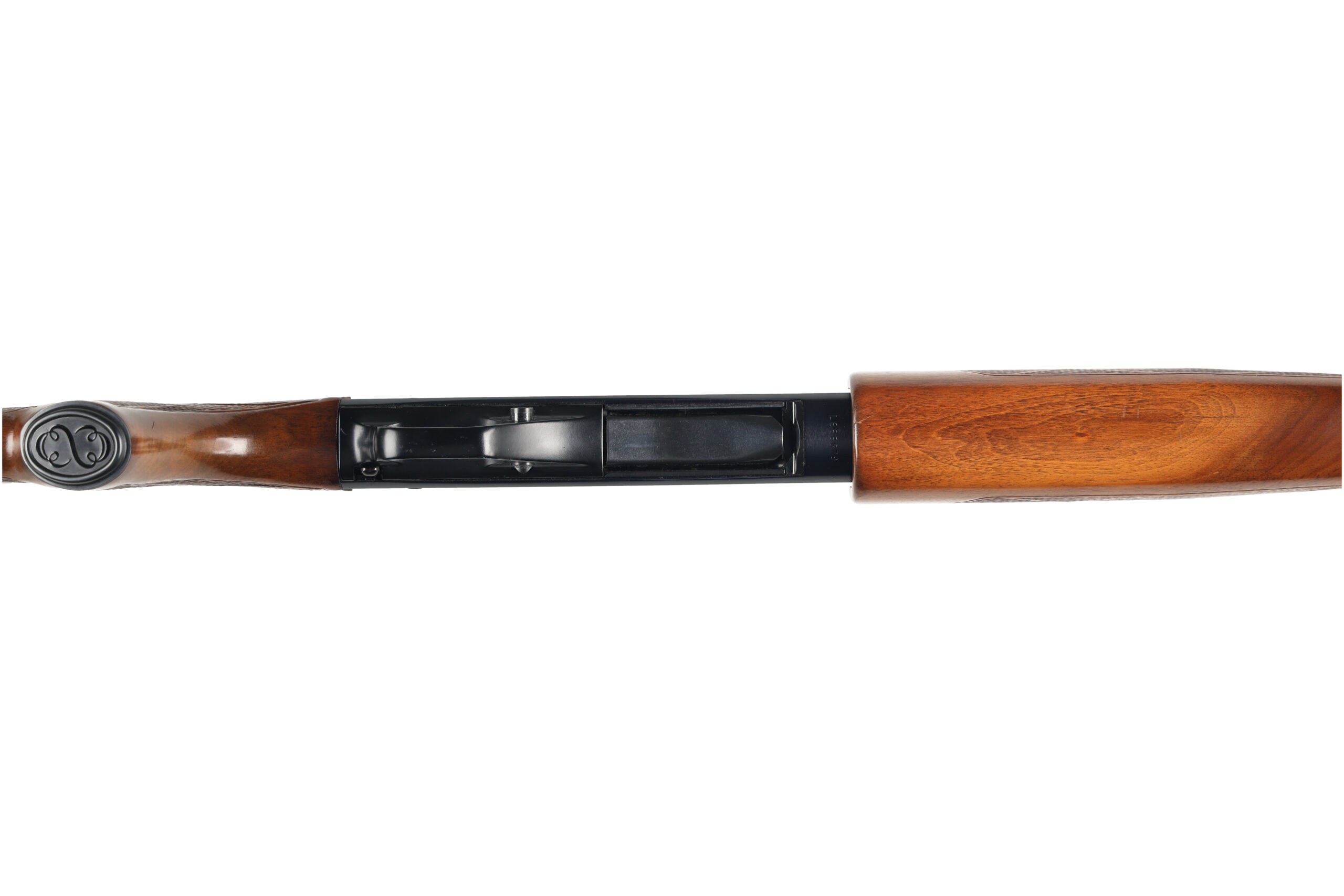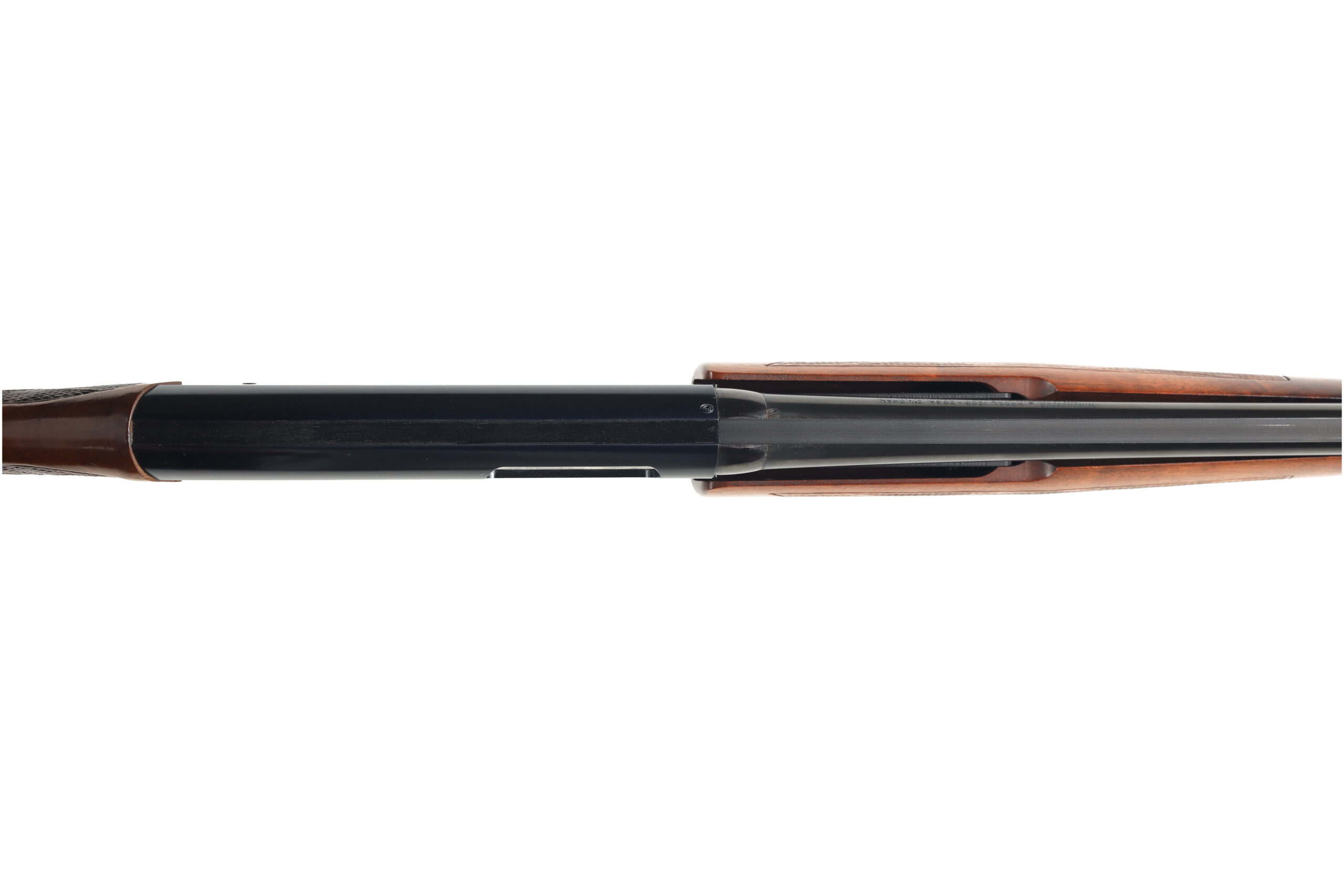 The Winchester 1200 was introduced in 1964 as a less expensive option to the model 12 shotgun, incorporating a number of design changes to simplify the manufacturing process without impacting quality. This used example of a Model 1200, chambered in 20 Gauge is in excellent condition, with practically no wear. The length of pull appears to have been shortened and the pad replaced with a wooden plate.