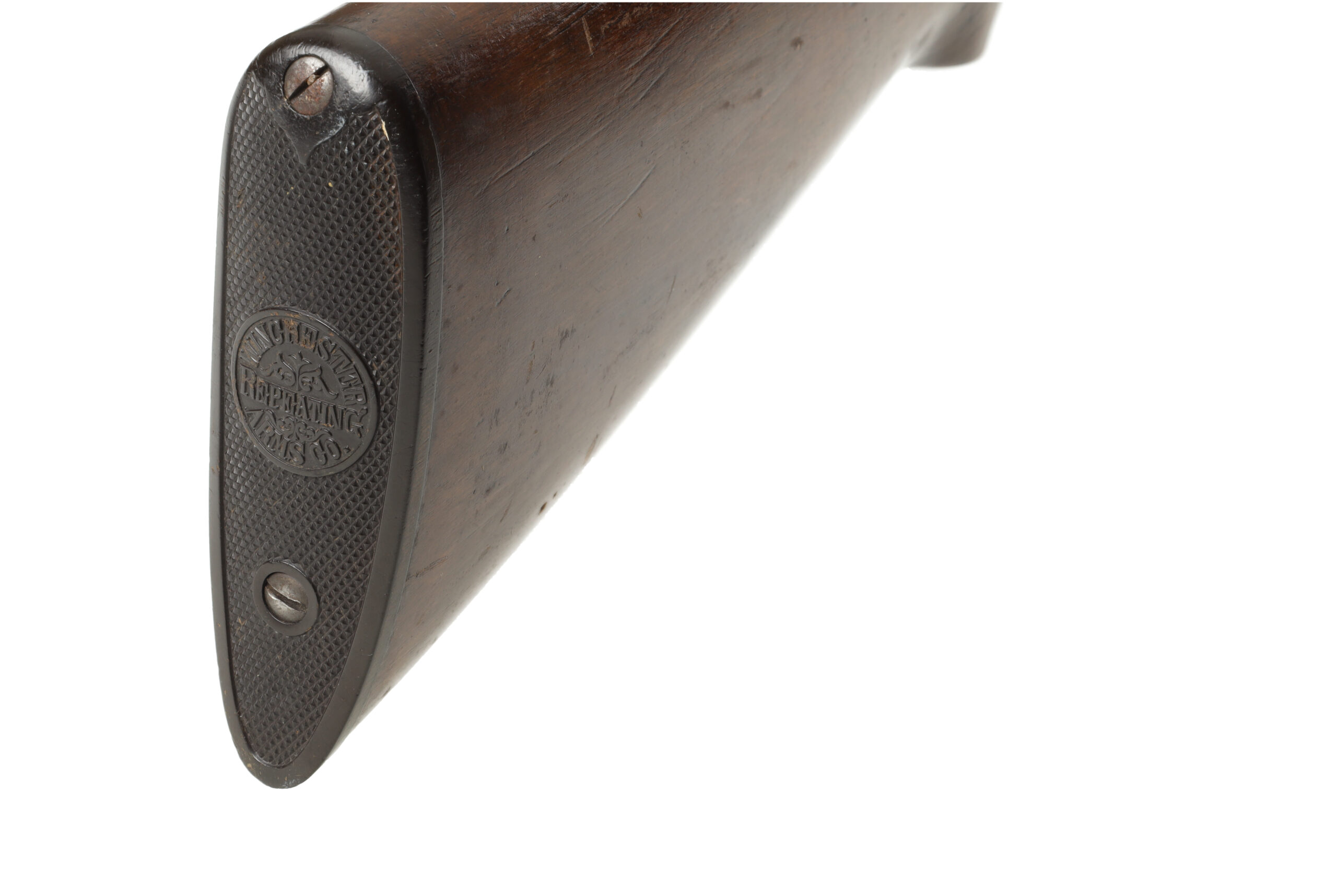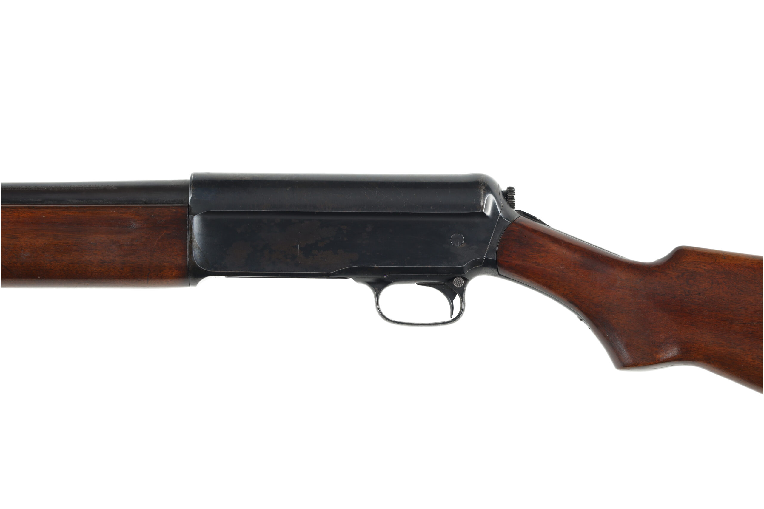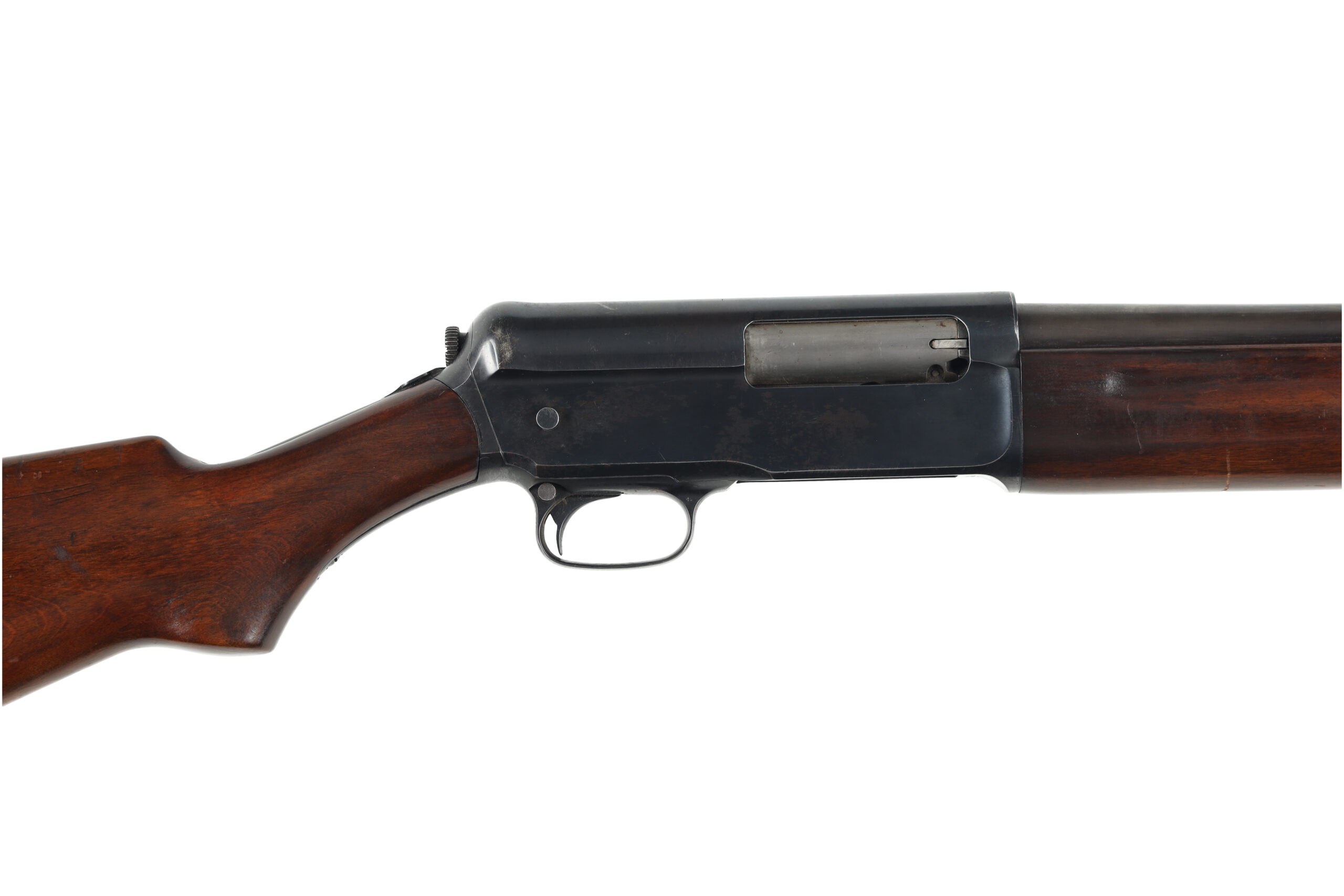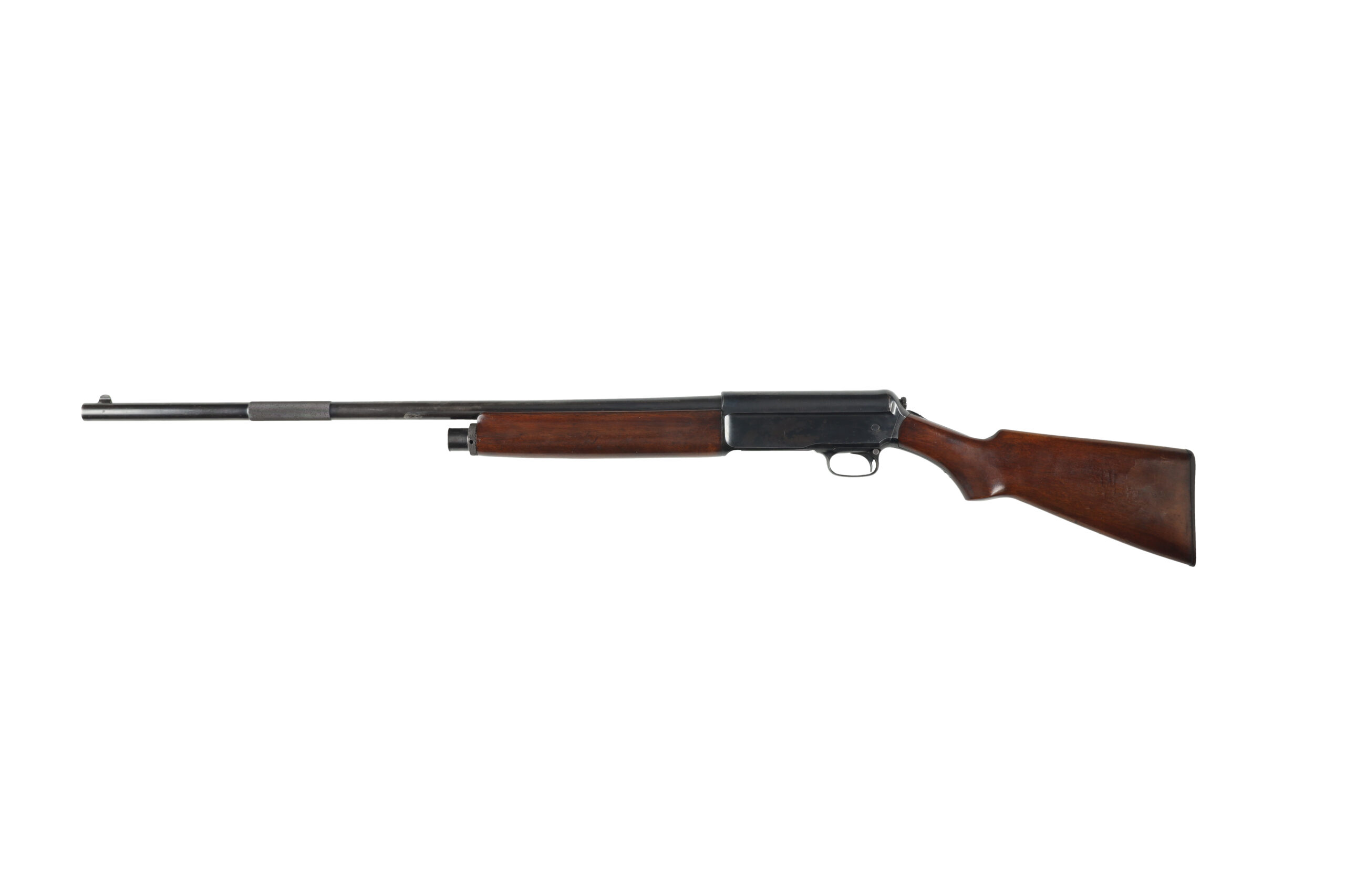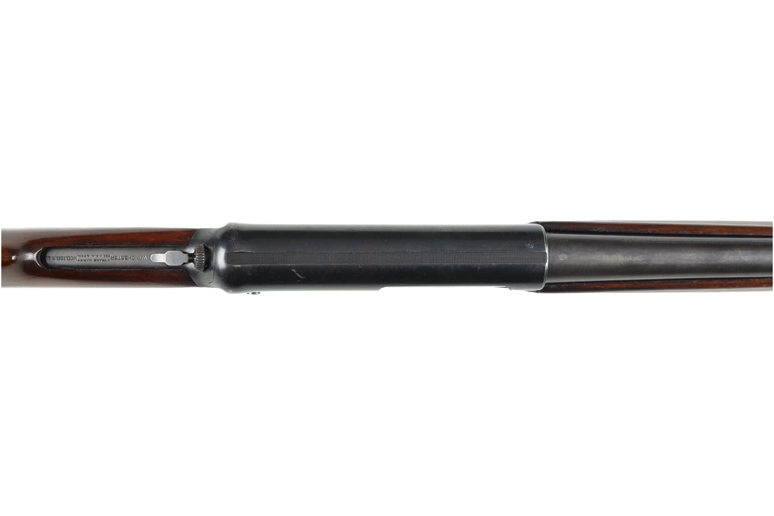 The Winchester Model 1911 SL, sometimes called the widowmaker due to its odd reloading method, was Winchester’s attempt to copy the success of the Browning Auto 5. This example, made in 1914, is in good overall condition, with wear appropriate for its age. It looks like the finish on the stocks and steel may have been touched up in the over 100 year life of this shotgun. The stock has also become very slightly loose and should be tightened or re fitted.