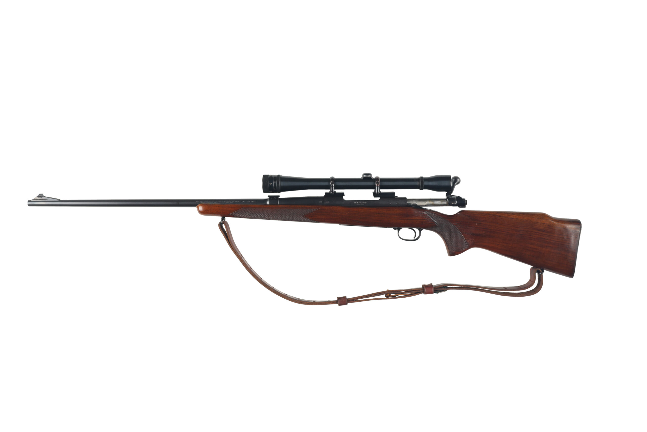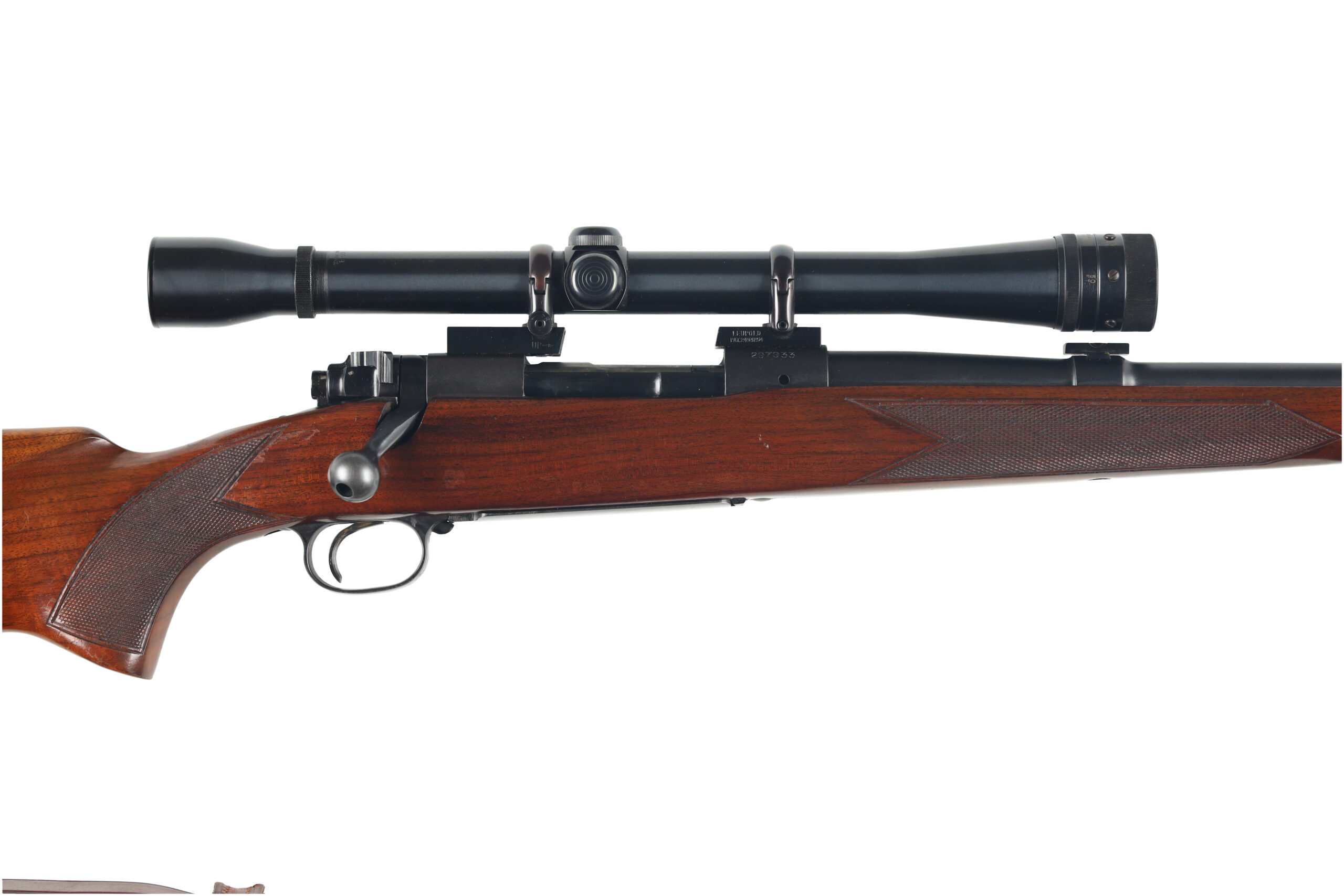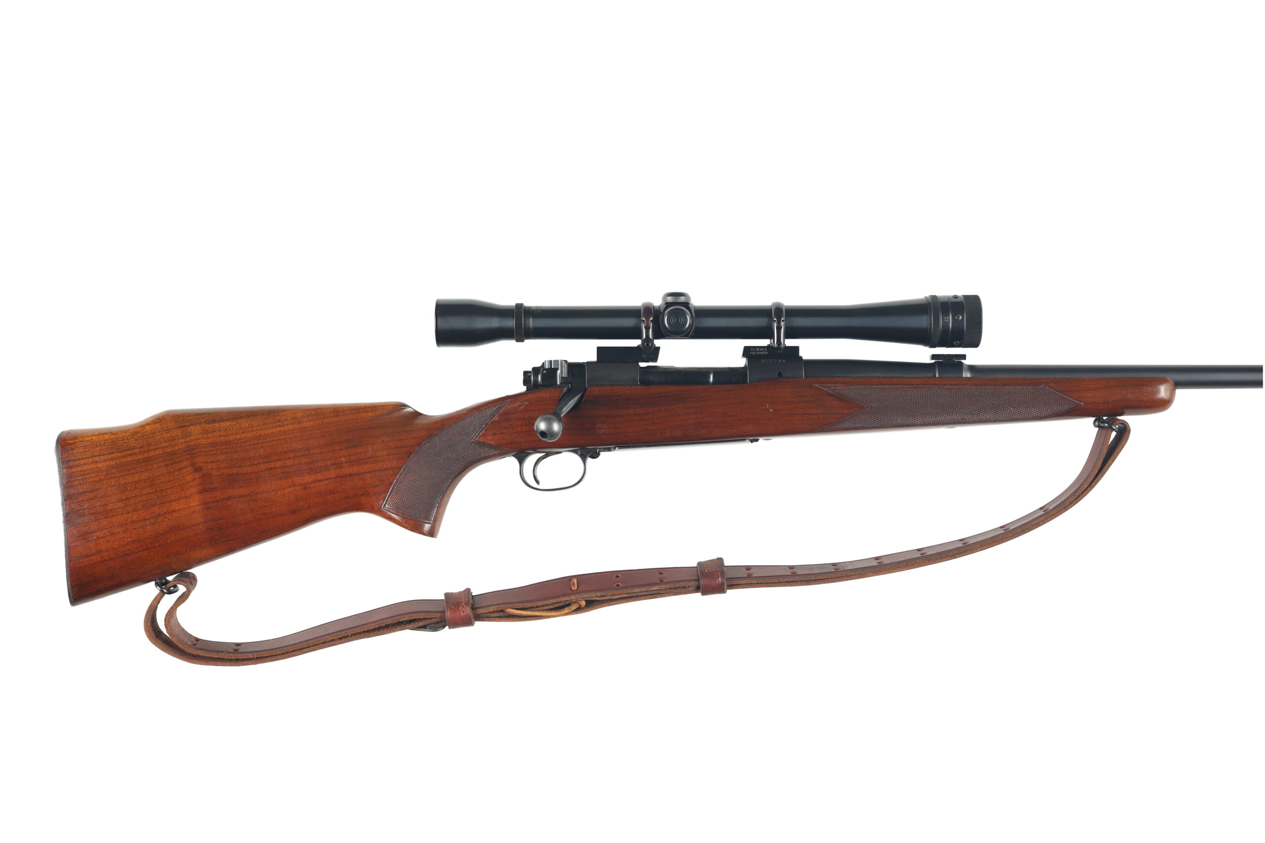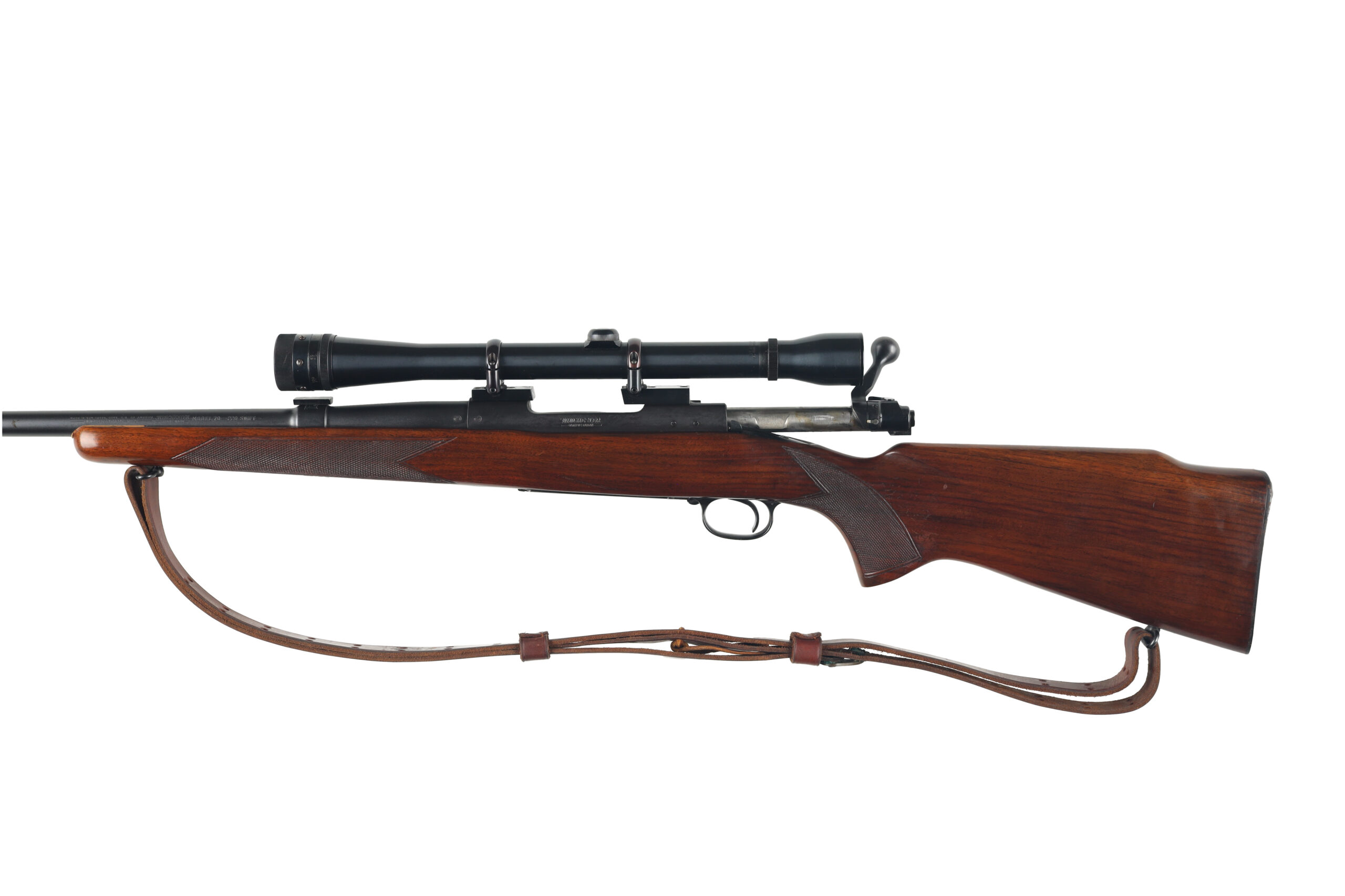The Winchester model 70 is one of the finest bolt action rifles ever made, known for its reliability and accuracy. This example, made in 1954 is in very good to excellent overall condition, with only light wear. It has been outfitted with a Weaver K10 scope, an excellent complement to its chambering od 220 swift, making a wonderful varmint rifle.